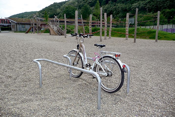 Duurzame aanleunbeugel van thermisch verzinkt staal. Deze fraaie aanleunbeugels geven door hun gebogen afwerking een optimale bescherming van uw fiets.