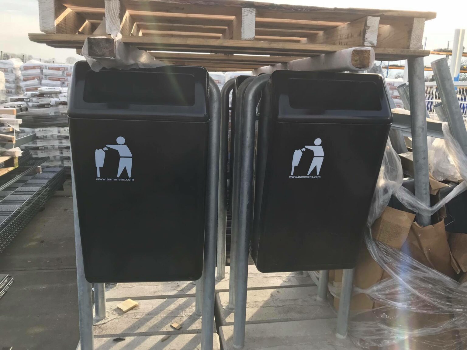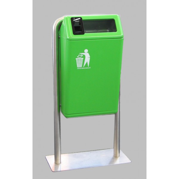 • 2 afvalbakken aan 1 staander op voet