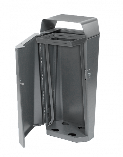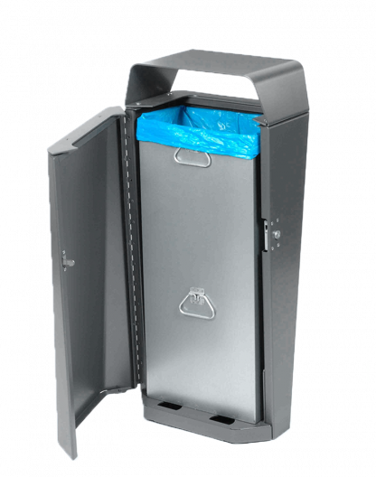 - Zakhouder-uitvoering: Voorzien van een draaibare zakhouder van platstaal (40 x 4 mm), zodat afvalzakken snel en eenvoudig vervangen kunnen worden.