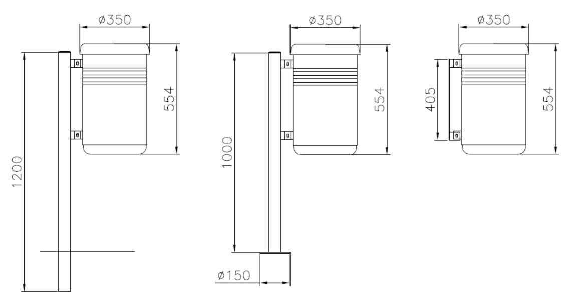 - Montageopties: Vrijstaand via paalbevestiging (met voetplaat of in te betonneren) of muurbevestiging.
