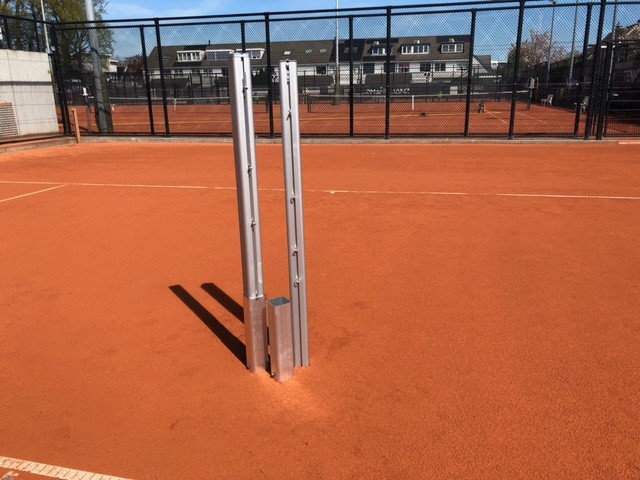 Voor dubbele tennisvelden moeten beide tennis netpalen 0,91 meter langs de weerszijden buiten het dubbelveld staan.
