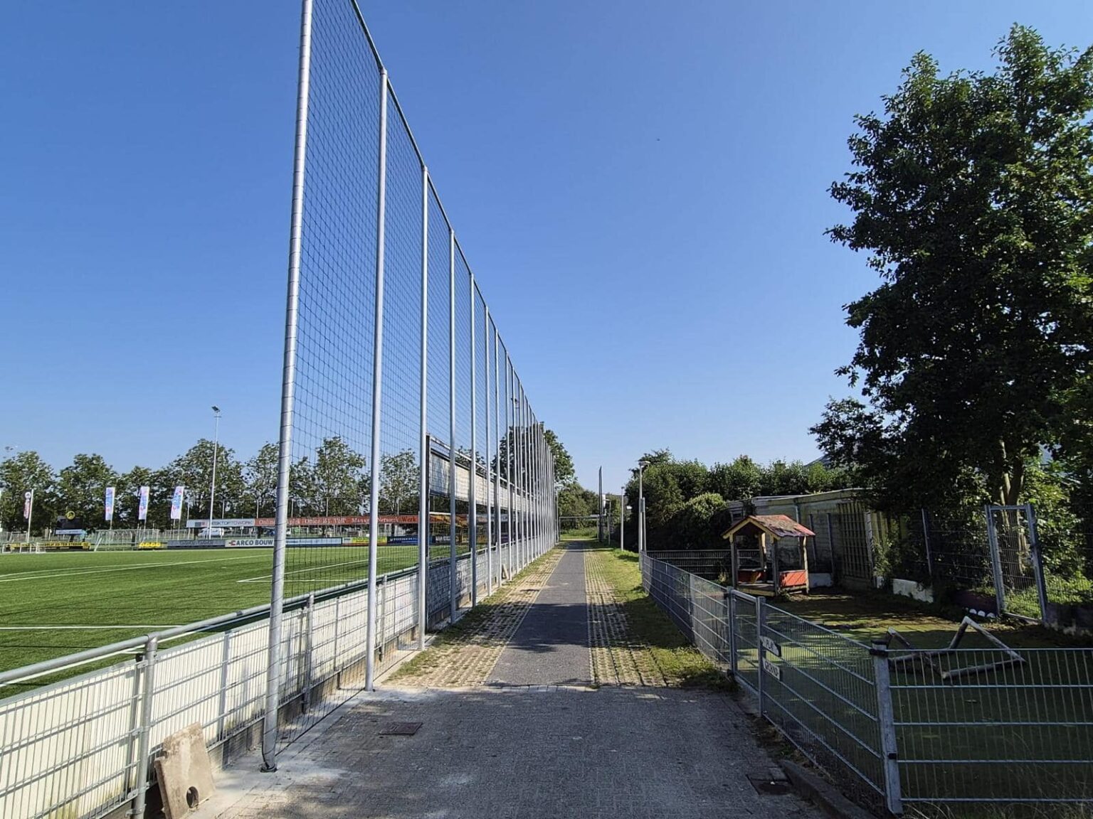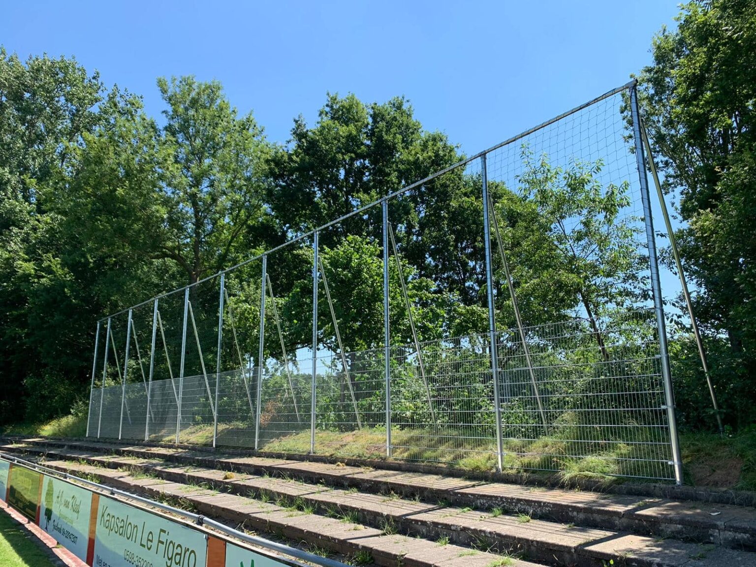 Een ballenvanger, ideaal om gevaarlijke situaties te voorkomen, naast sportverenigingen bijvoorbeeld op trapveldjes, schoolpleinen of speelterreinen. Bovendien kunnen wij uw ballenvanger voorzien van bal-contactgeluidsdemping voor extra comfort.