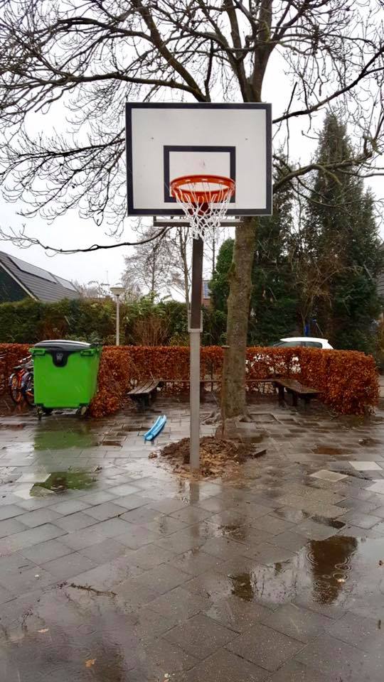 De ring moet altijd aan de paal bevestigd zijn (of een frame dat aan de basketbalpaal zit) en nooit alleen aan het bord. Dit i.v.m. de veiligheid.