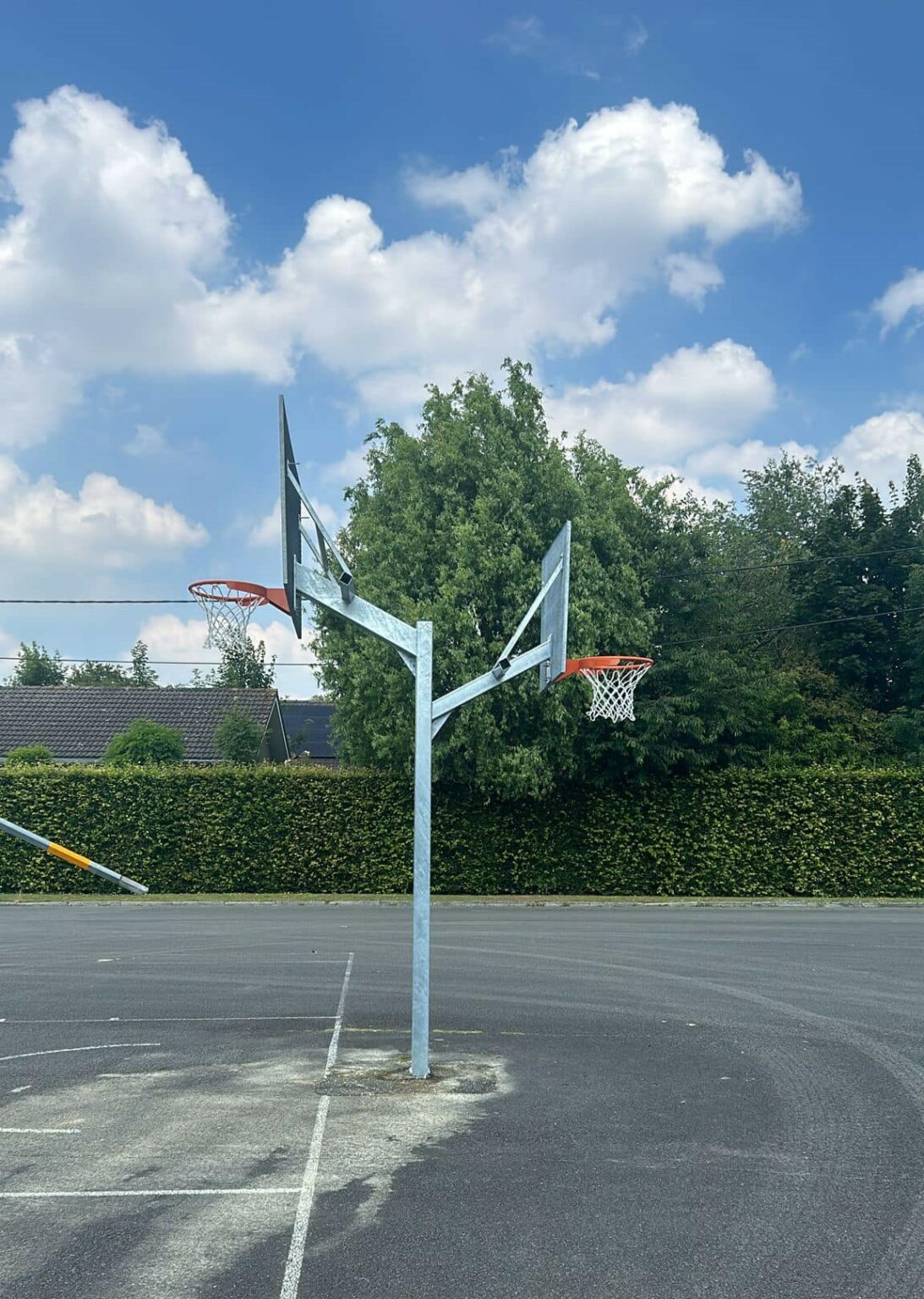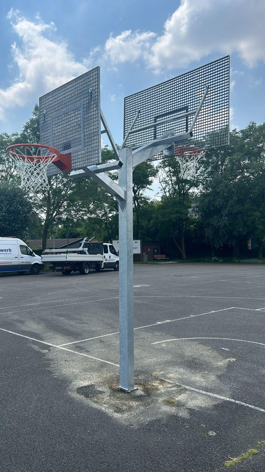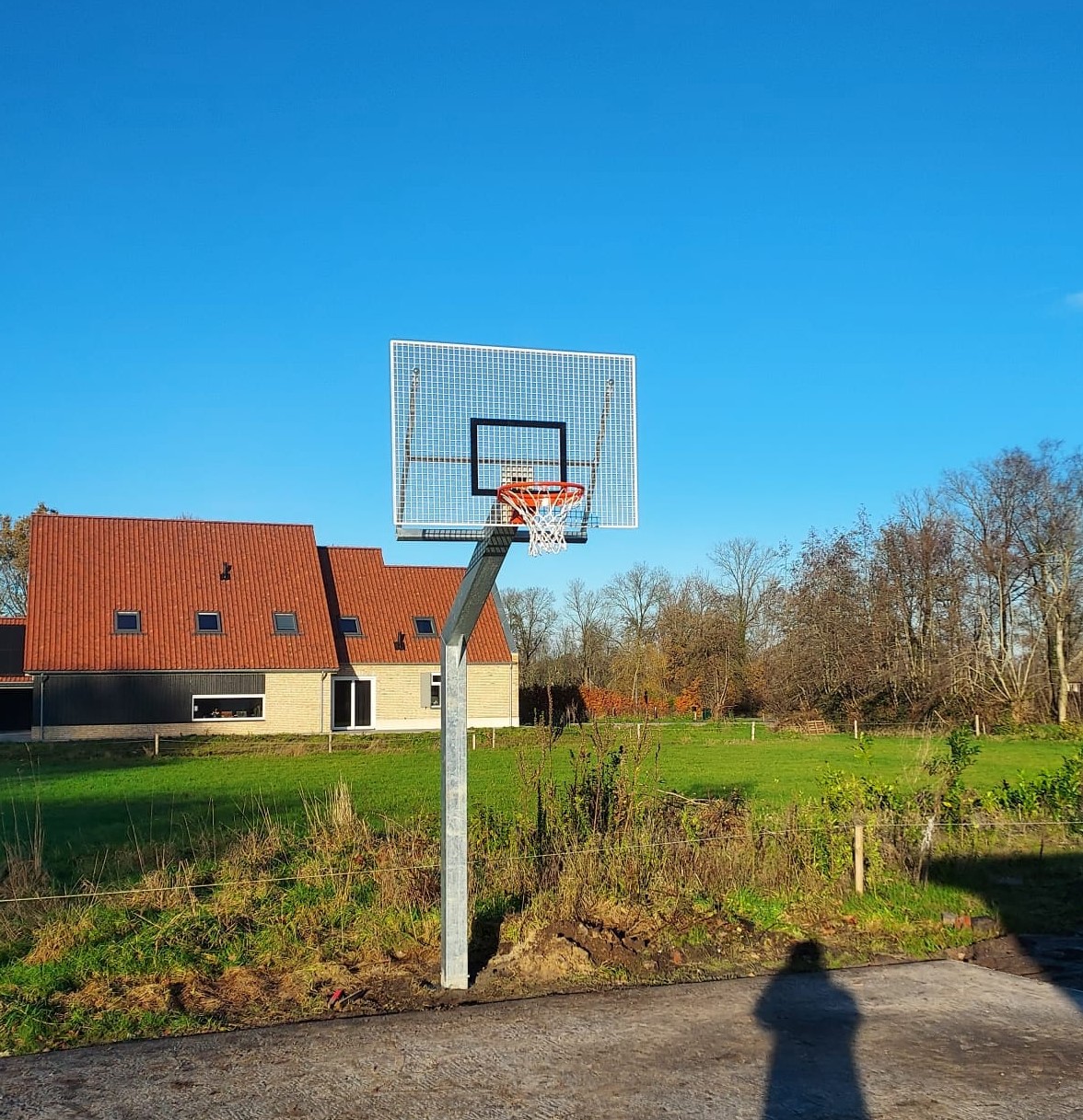 • Basketbalpaal van stalen profiel: 150 x 150 x 3 mm. Volbad verzinkt.
