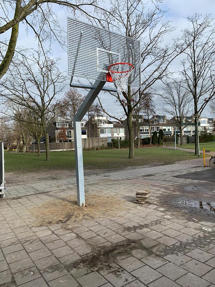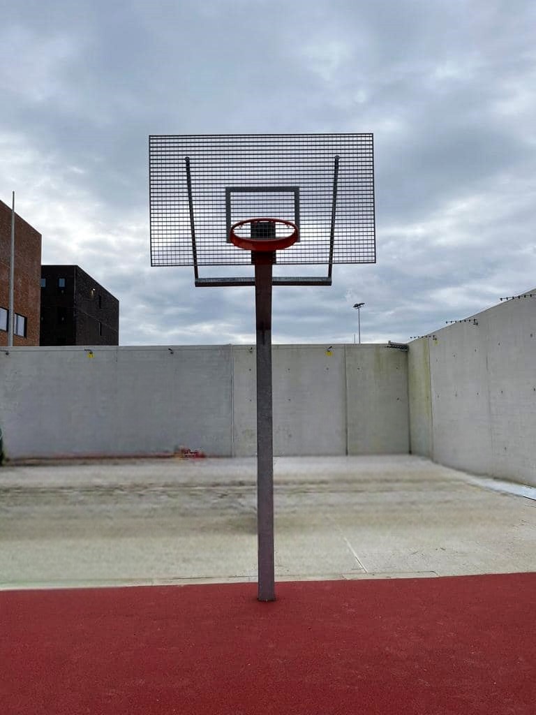 Vandalisme-bestendige basketbalpalen met wedstrijdbord
