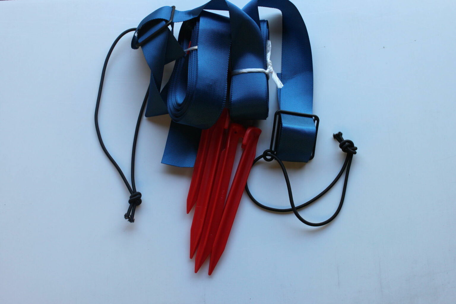 Banden voorzien van ogen, touw en haringen om de banden meet af te spannen.