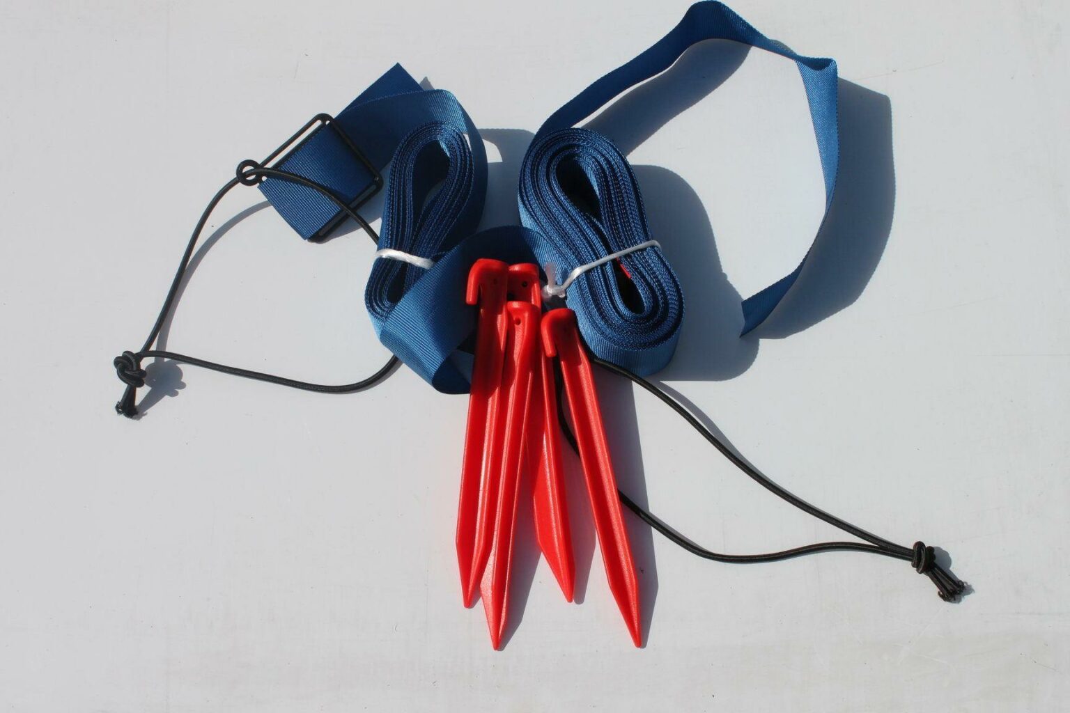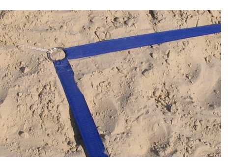 Deze beachvolleybal belijningsset kan gebruikt worden voor beach volleybal, tennis, voetbal en handbal. De set is verstelbaar en is goed zichtbaar in het zand. Speelveldmarkering 9x18m, 50mm breed PP band, compleet met 23 cm kunststof ankers bungee spankabels