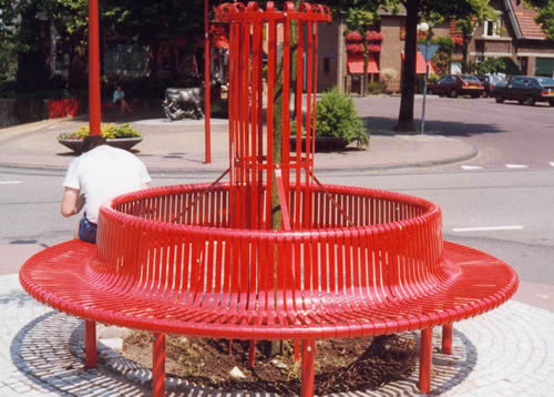 (Ook voor de afgebeelde boombescherming op de foto boven van de rode uitvoering van deze boombank kunt u bij ons terecht. Bij afname boombank in ral kleur naar keuze € 510,00 ex btw)