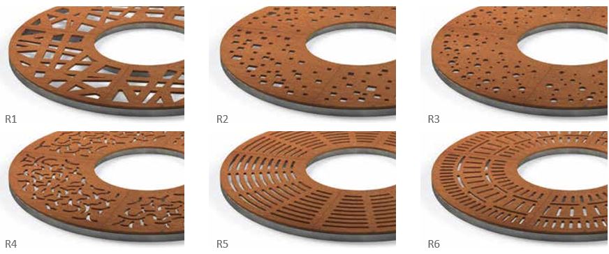 De Boomrooster Corten, rond is leverbaar in verschillende patronen. Patroon R1 tot R6. Klik op de afbeelding voor de details: