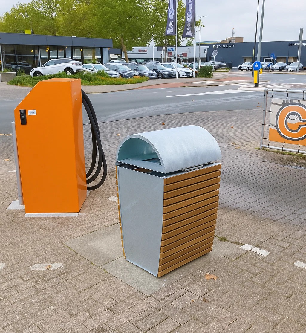 Deze ronde buitenafvalbak is een duurzame keuze met een moderne uitstraling – perfect voor elke buitenruimte waar een combinatie van design, veiligheid en gebruiksgemak gewenst is.