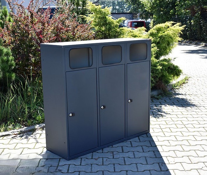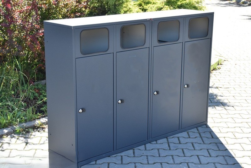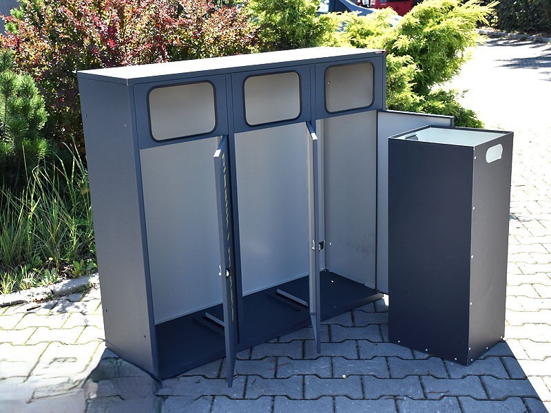 Elke container beschikt over een verzinkt en gecoat binnenwerk, dat zijdelings geleegd kan worden. Dankzij de eenzijdige inworp, beschermrand en afdak blijft het geheel hygiënisch en gebruiksvriendelijk. Ideaal voor drukbezochte buitenlocaties zoals bedrijfsterreinen, scholen en stadspleinen.
