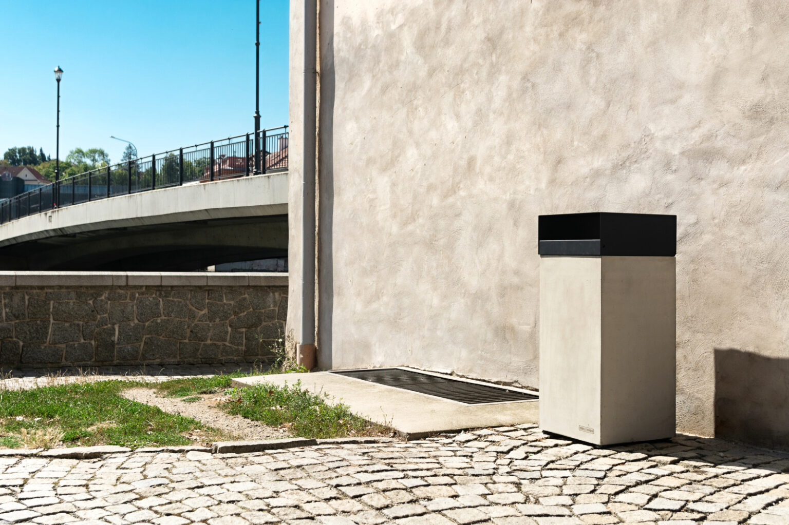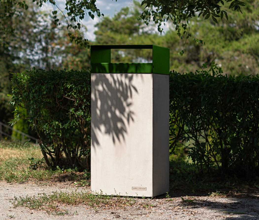 Betonnen design afvalbak – waar duurzaamheid en vormgeving samenkomen.