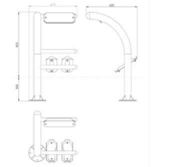 Technische tekening buitenfitnesstoestel Back Trainer.