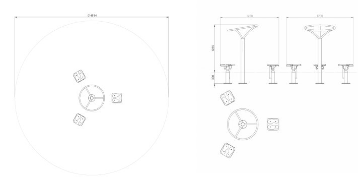 Technische tekening buiten fitnesstoestel Triple Twister