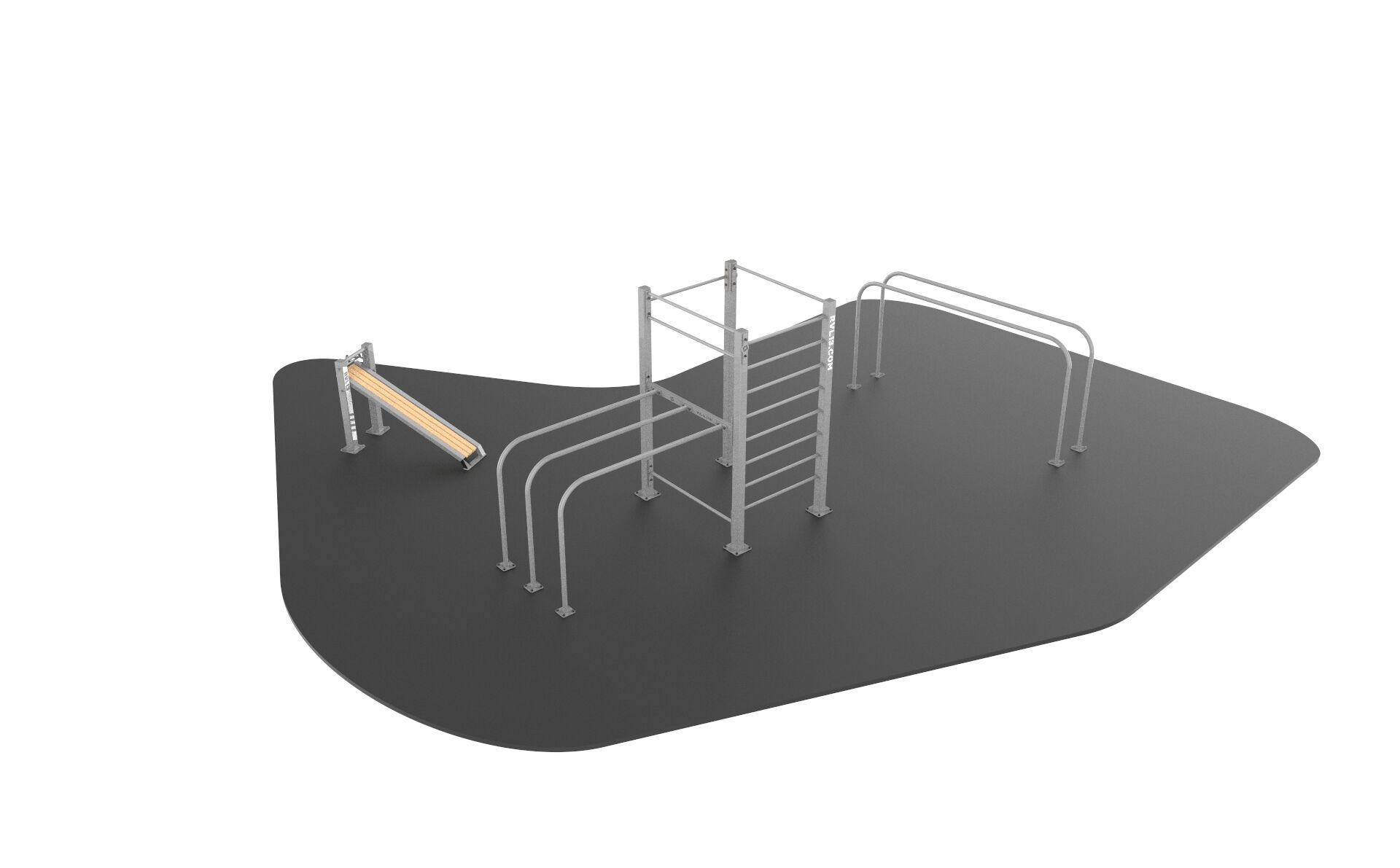 Het toestel wordt als bouwpakket geleverd, is eenvoudig te installeren en leverbaar in diverse fraaie RAL-kleuren. Geschikt voor strekken, conditietraining en krachttraining voor gebruikers van 15-65 jaar. Een duurzame en onderhoudsarme oplossing voor sportparken, buurten, campings en recreatiegebieden.