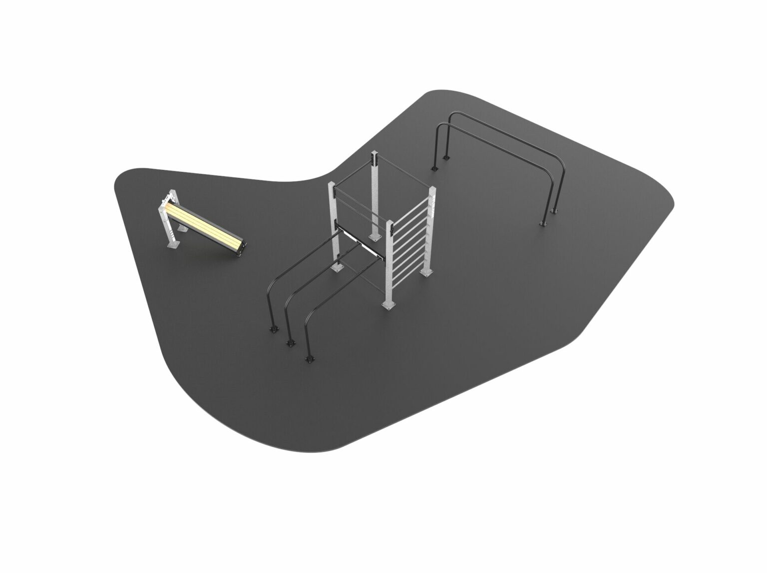 Op zoek naar een sterk en onderhoudsvrij outdoor fitness toestel? Ons robuuste mini-bootcamp toestel is de ideale keuze voor openbare ruimtes, sportparken, campings en recreatiegebieden. Dit hoogwaardige calisthenics station is geschikt voor sporters van 15 tot 65 jaar en biedt veelzijdige mogelijkheden voor krachttraining, conditietraining en stretching.