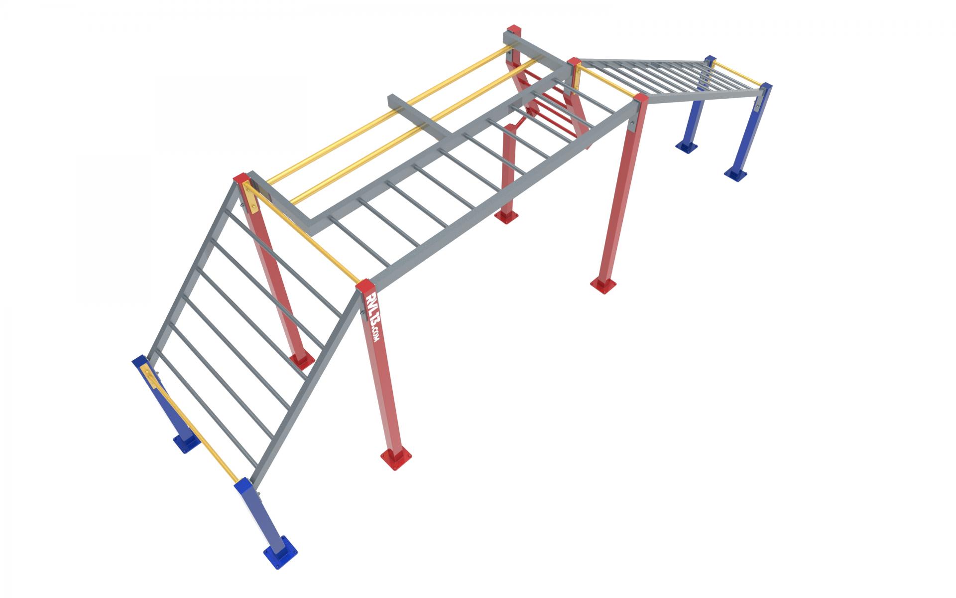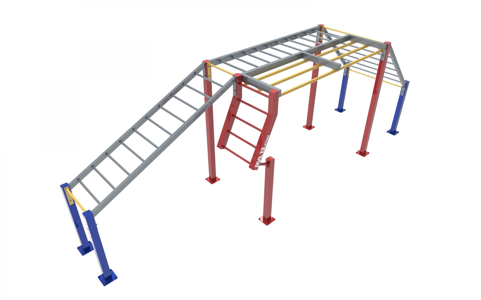 • Twee lange, 3 meter parallel bars die continu handcontact mogelijk maken. Dit is ideaal voor gebruikers die stapsgewijs willen opbouwen van lichte naar meer uitdagende oefeningen.