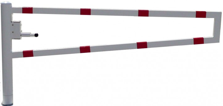 1. De witte draaipoort met rode reflecterende strepen.