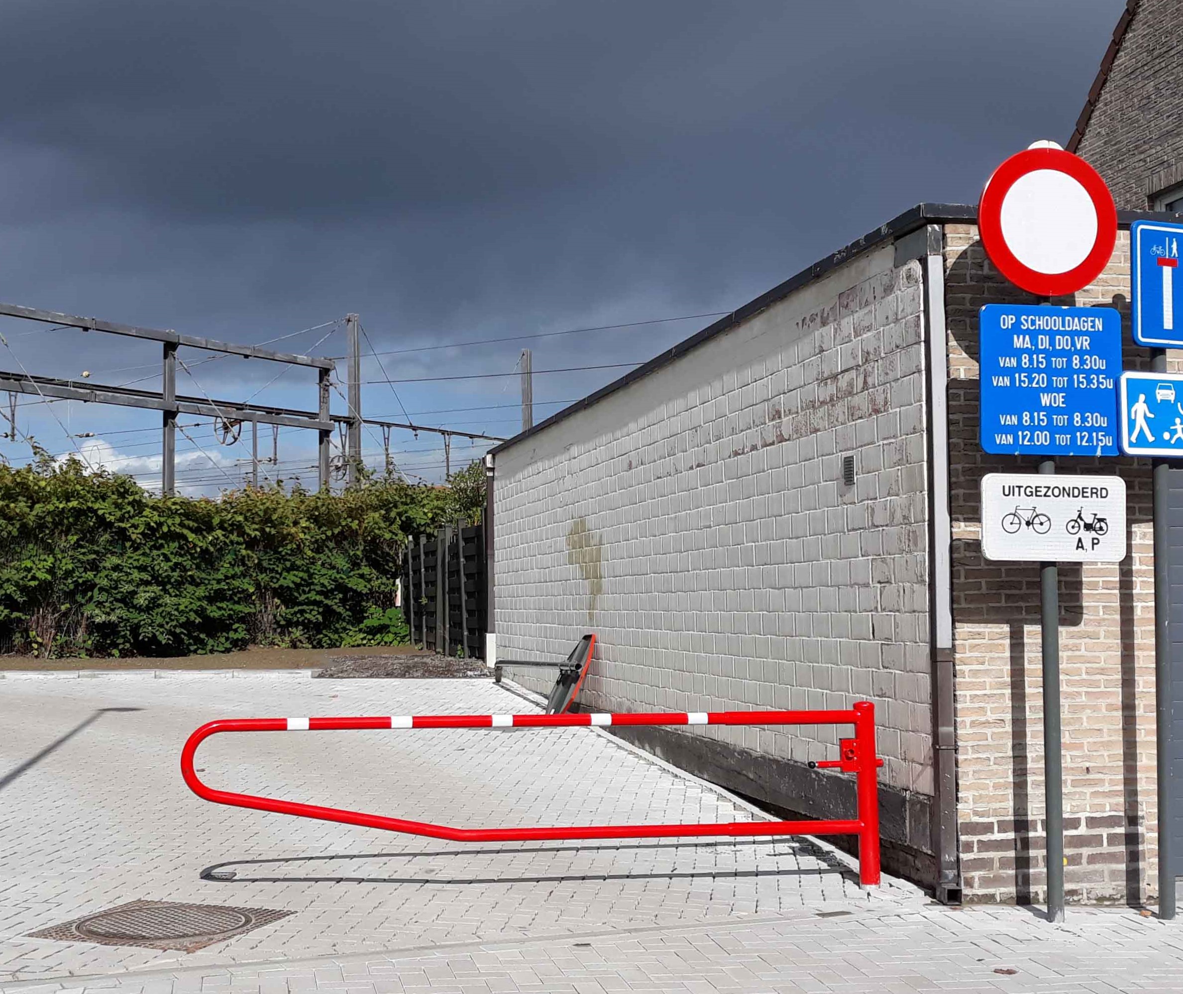 2. De rode draaipoort, met witte reflecterende strepen.