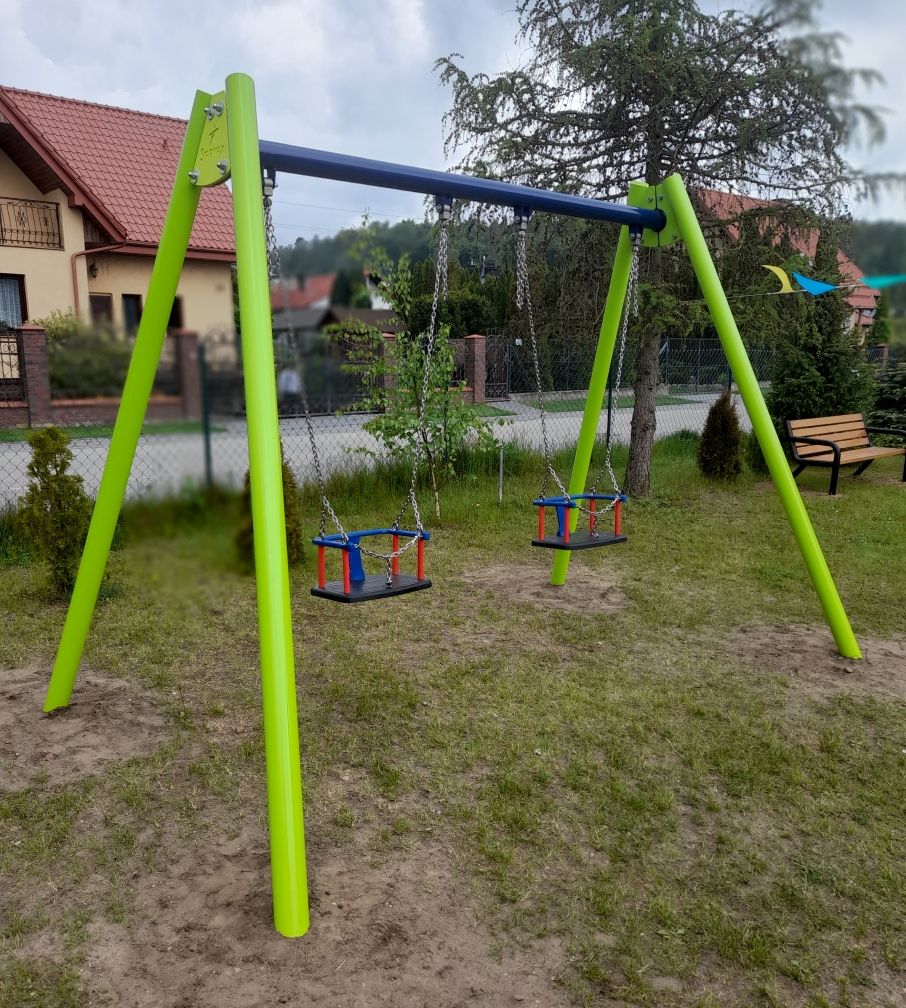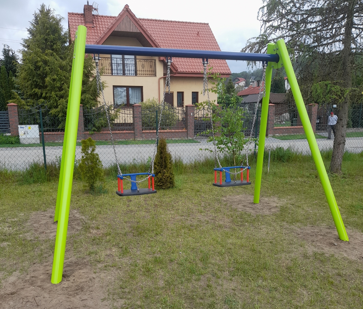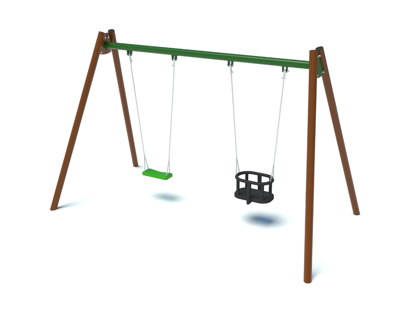 Breng plezier en avontuur naar je speeltuin met de dubbele schommel. Dit kleurrijke speeltoestel is ontworpen om de verbeelding van kinderen te prikkelen en eindeloos speelplezier te bieden.