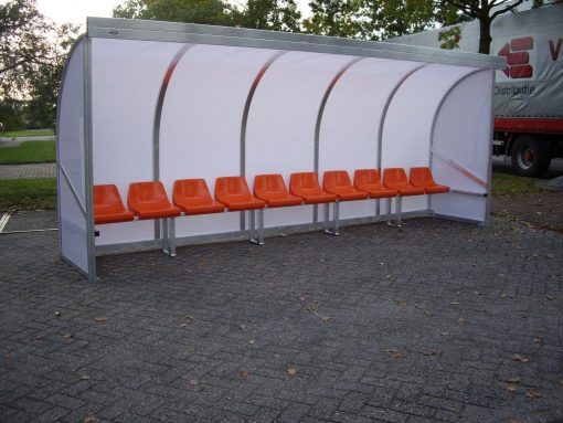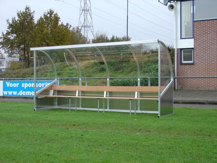 Robuuste aluminium dug-outs met slagvast polycarbonaat – eenvoudige montage en 5 jaar garantie