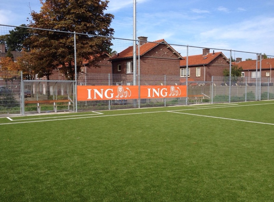 - levering inclusief verzinkte kokers c.a. 1 meter lang met draad t.b.v. de montage op kunstgras.