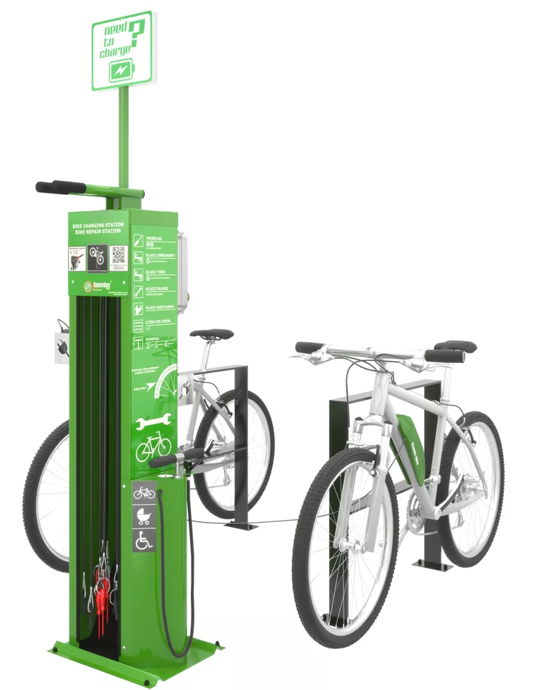 Geïntegreerde gereedschap-set in de kolom van het fiets oplaadstation