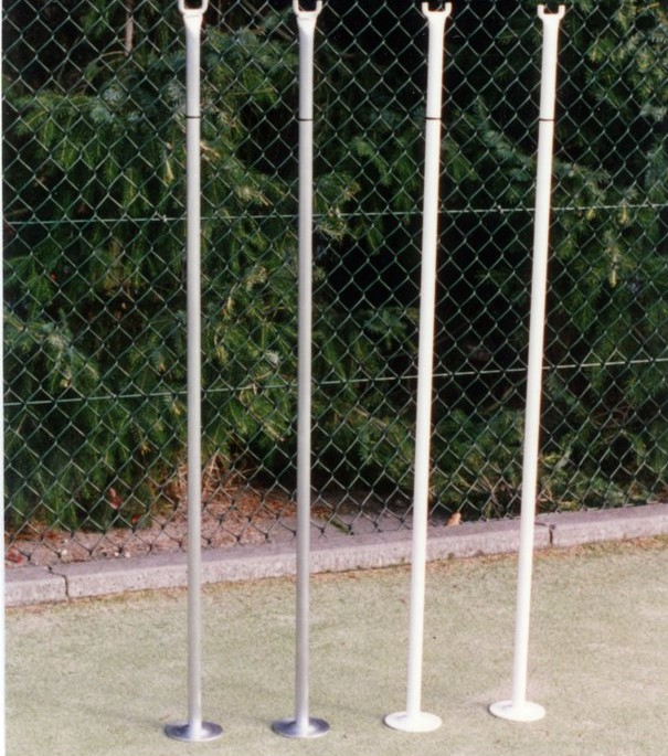 De enkelspelpalen worden geleverd per stel (2 stuks). Standaard uitgevoerd in naturel aluminium, maar tegen een meerprijs zijn ze desgewenst ook leverbaar in een RAL-kleur naar keuze, zodat u de palen perfect kunt afstemmen op de uitstraling van uw tennisbaan of sportaccommodatie.