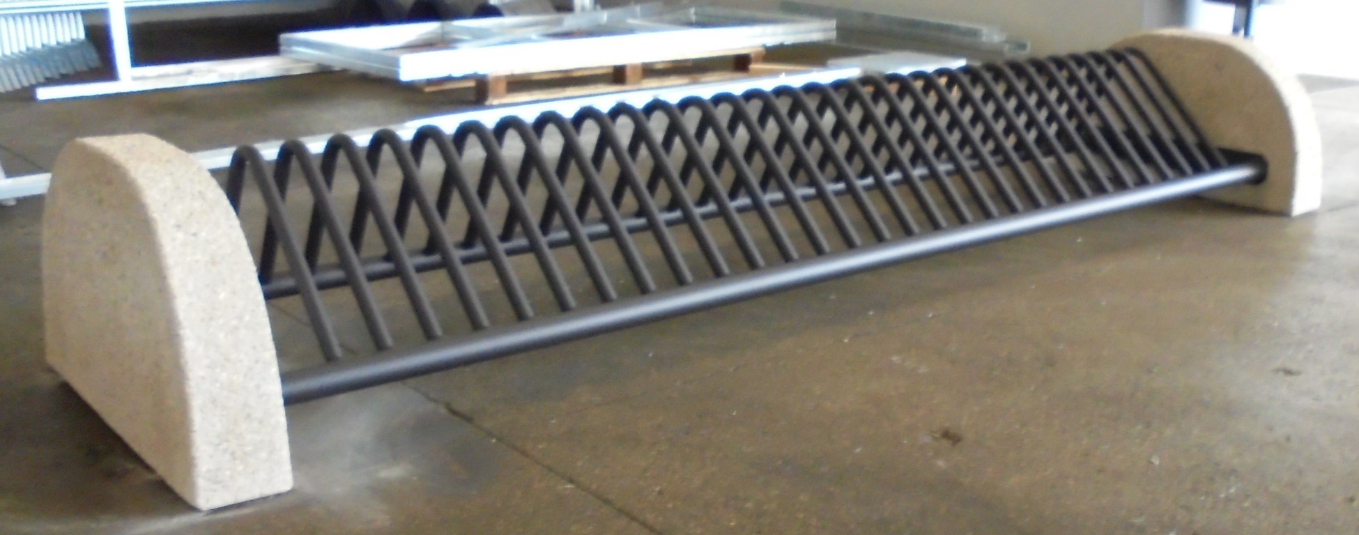 Bevestigingsmaterialen rvs, met zware betonvoeten. Dus zeer geschikte fietsenrekken om vrijstaand te plaatsen.