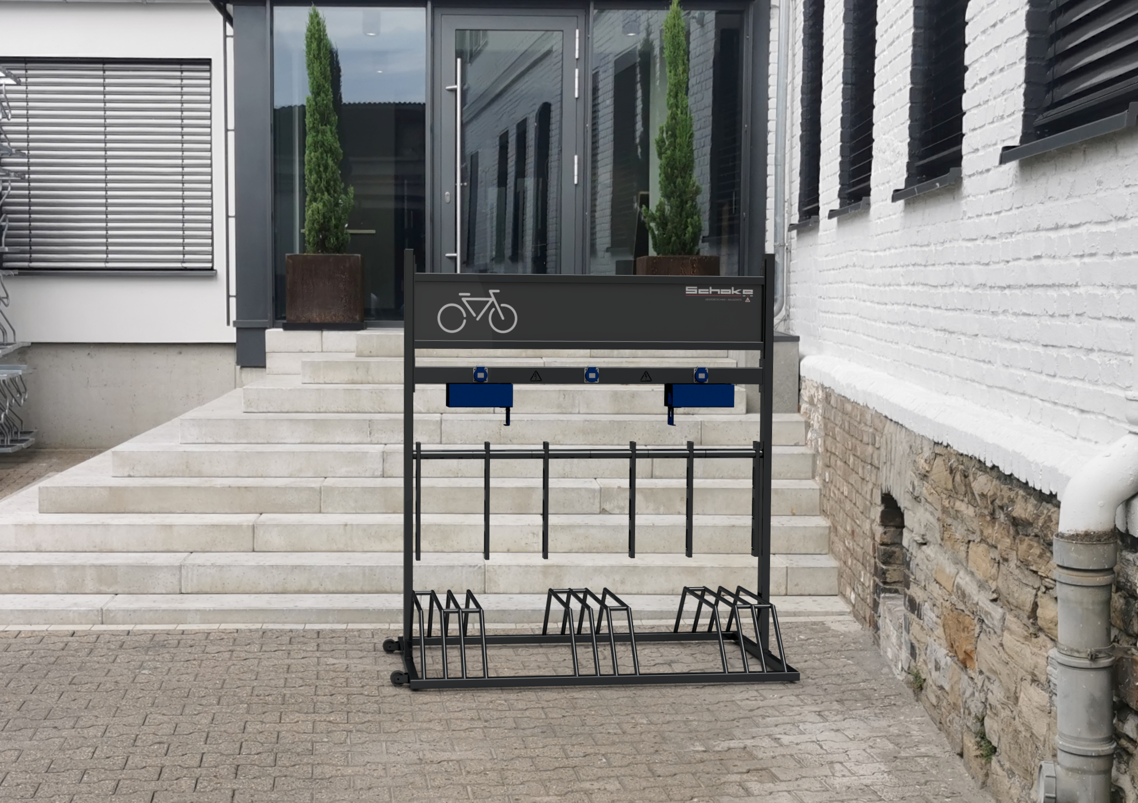 Bent u op zoek naar de perfecte oplossing voor het veilig stallen en opladen van elektrische fietsen? Dit hoogwaardige fietsenrek biedt ruimte aan 6 fietsen en is voorzien van 3 stevige contactdozen, ideaal voor het opladen van E-bikes. Uw klanten of medewerkers kunnen hun fietsen veilig en snel opladen, terwijl u tegelijkertijd de ideale plek heeft voor uw reclame-uiting!
