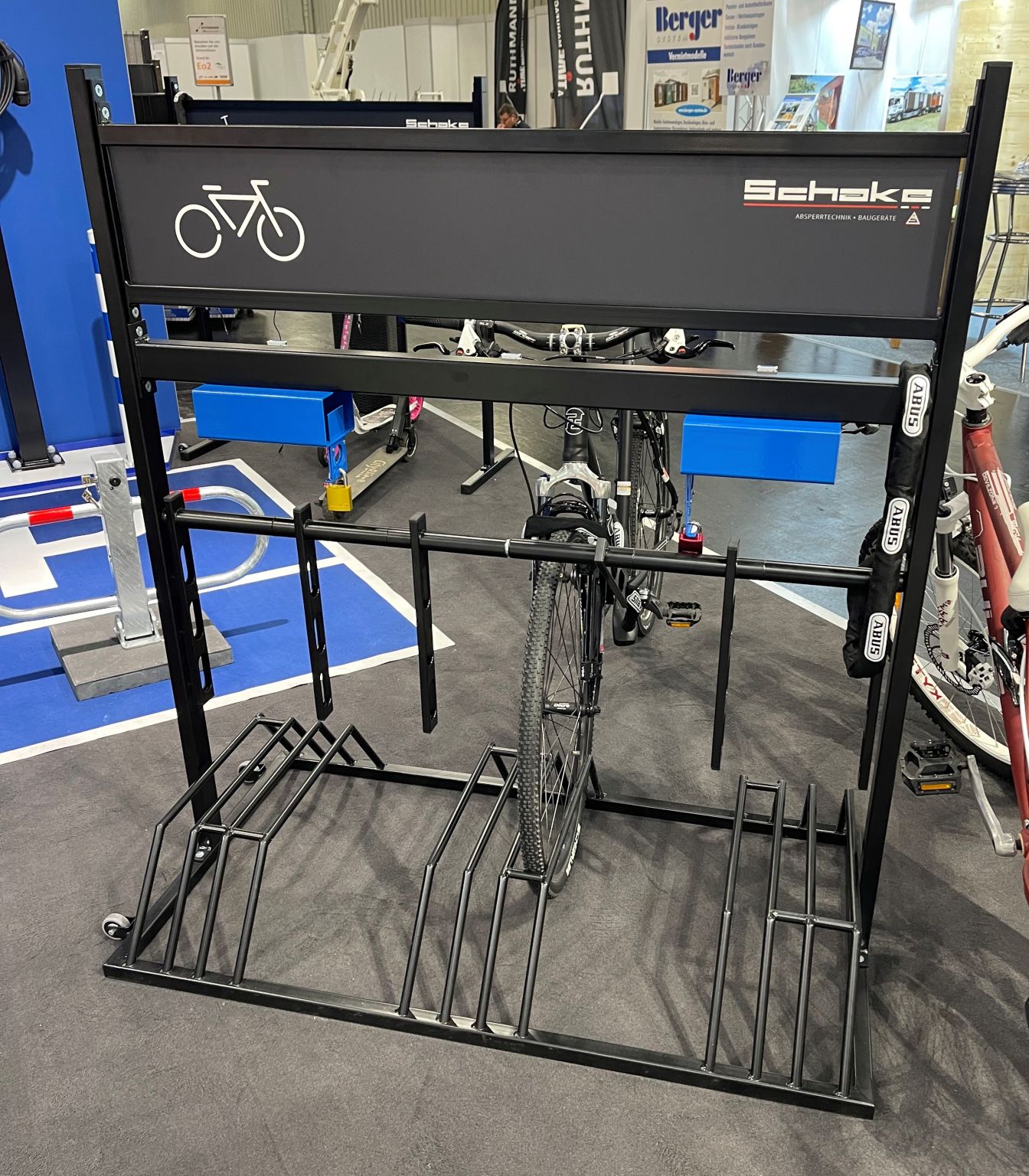 Door de 2 transportwielen is dit handige fietsenrek ook nog eens eenvoudig te verplaatsen