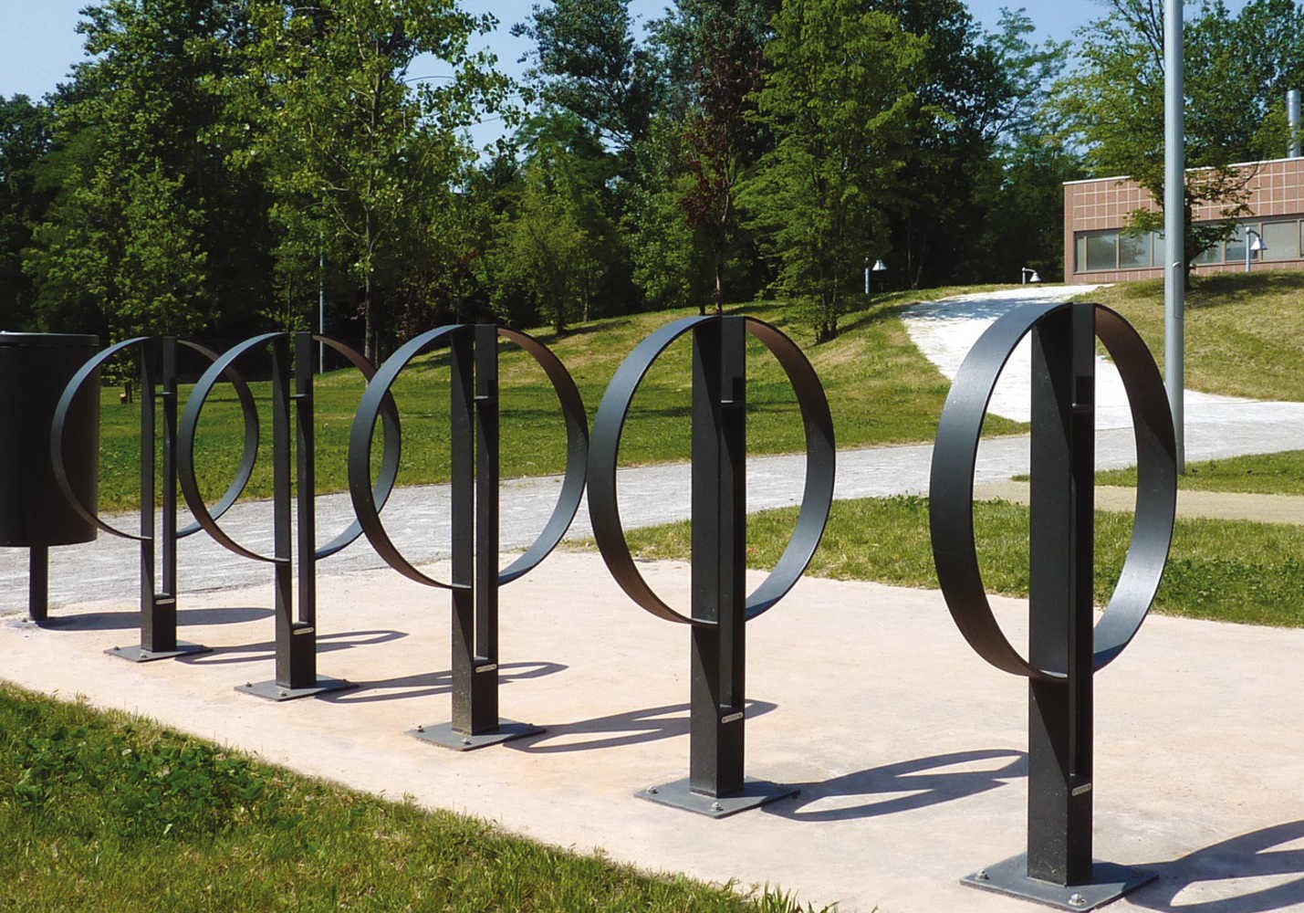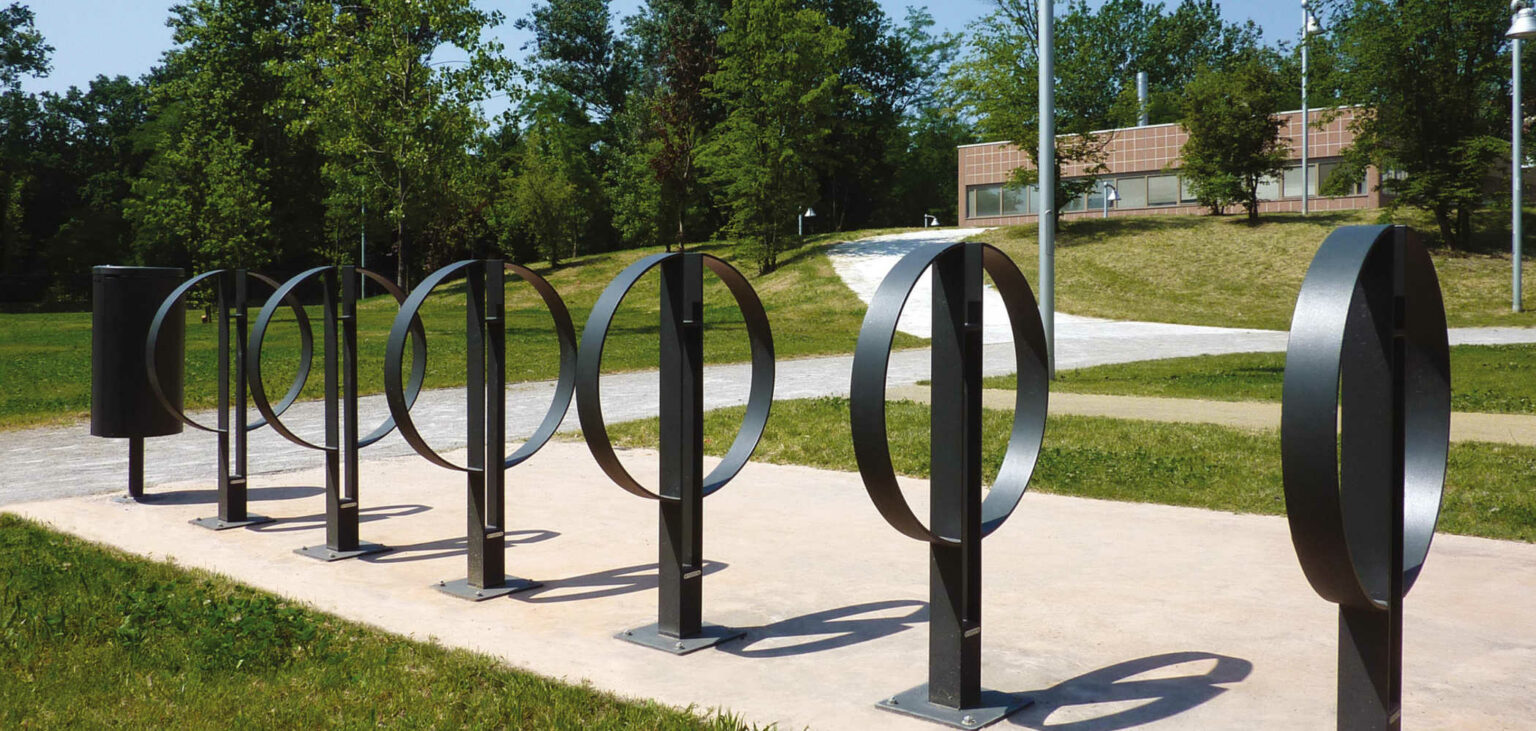 Fietsparkeren – fietsenrek met een uitstekende velg- en valbescherming en daarnaast een bijzonder design. Leverbaar in diverse ral kleuren.