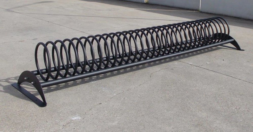 *Net als veel standaard fietsenrekken. Niet geschikt voor fietsen met: trommelrem, trekstang, (grote) schijfrem, fietsen met kleine wielen. Zie diameter spiraal  370 mm.