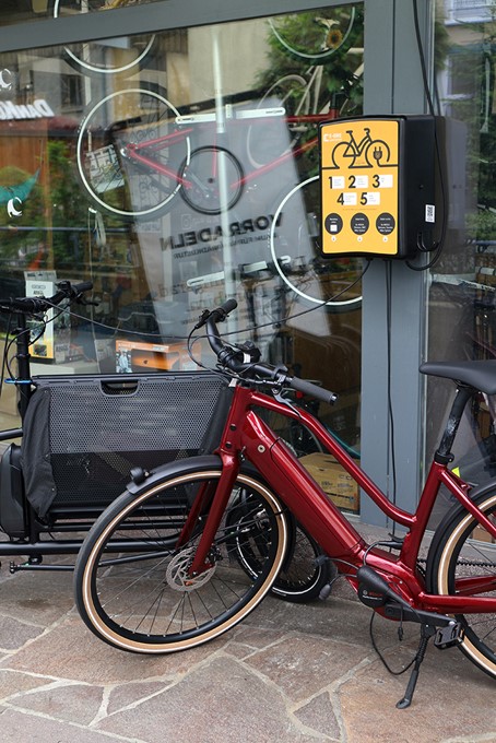 Dit is een veilige oplossing met de mogelijkheid om maximaal vijf verschillende stekkers aan te sluiten voor het direct opladen van elektrische fietsen (BOSCH / Rosenberger [BMZ, Brose, gespecialiseerd] / Shimano / Yamaha). Aan de onderkant van het laadstation bevindt zich tevens een Schuko-aansluiting voor opladers.