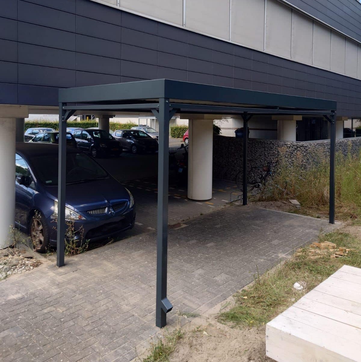 Bevestiging op het maaiveld door ons: Ook wij kunnen uw fietsoverkapping voor u installeren op het maaiveld, inclusief de funderingen. We ontzorgen u graag van A tot Z.