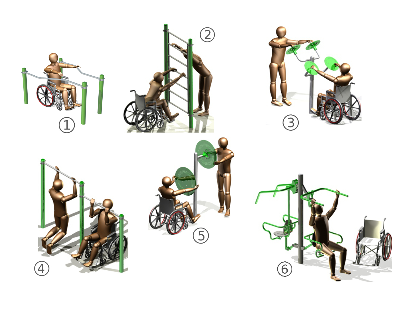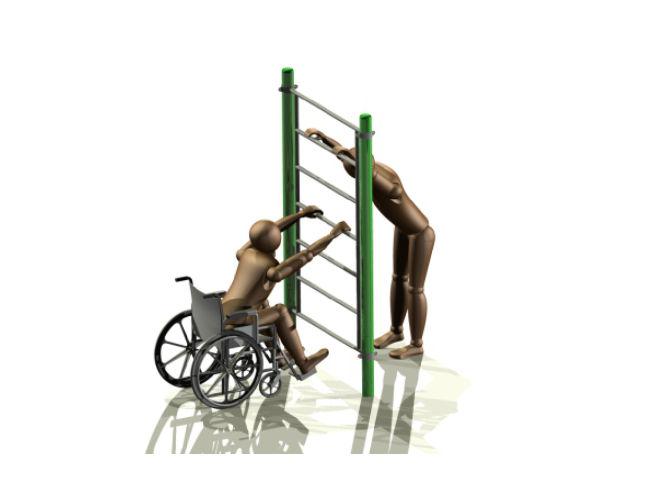 Buitenfitness toestel voor mindervaliden. Een aanwinst voor uw sportieve plein. Ook geschikt voor de valide sporter. Inclusieve fitness voor iedereen – beweeg samen, buiten en zonder barrières