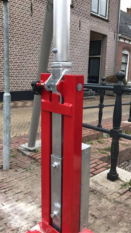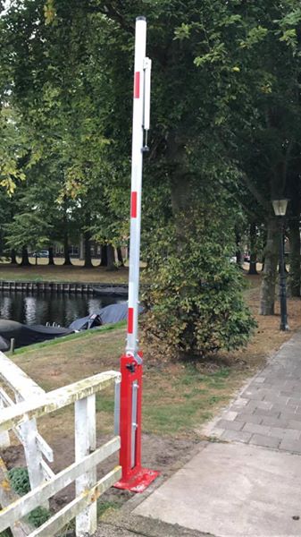 - zonder vaste opvangpaal, voorzien van een scharnierende aluminium pendelsteun.