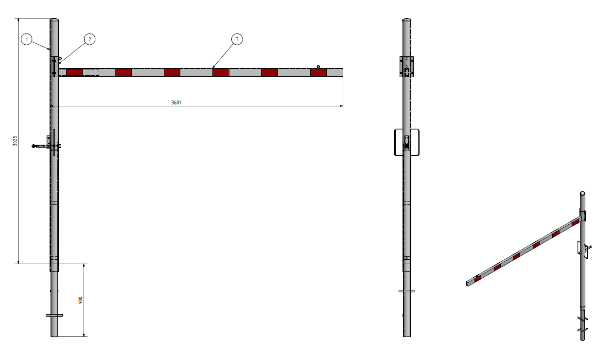 • Onderbalk: 2 meter lange ronde barrière via een ketting aan de draaibalk te bevestigen.
