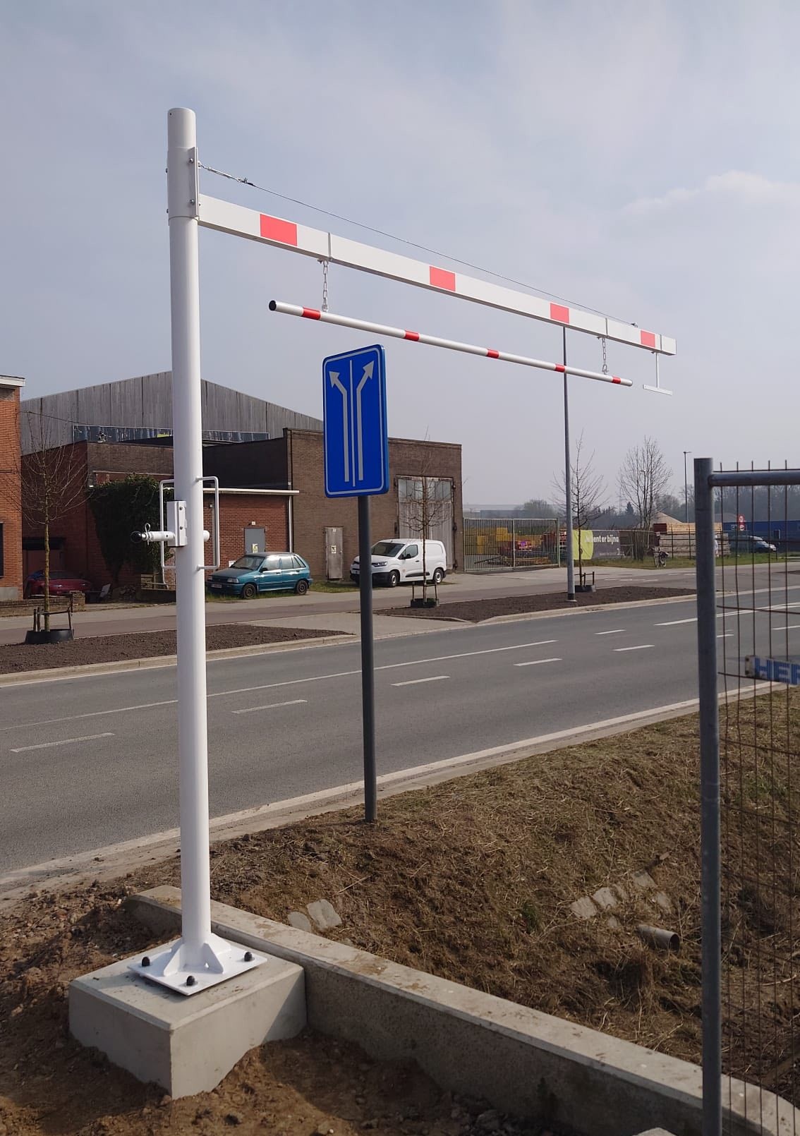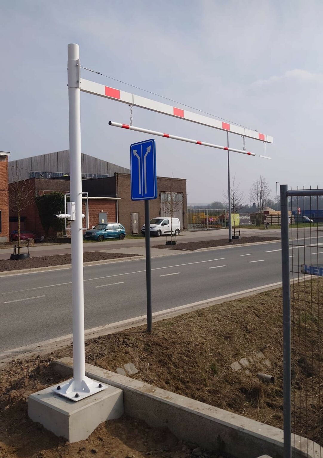 Hoogtebegrenzers met zwenk arm, ideaal als er af en toe zwaar (hoog) verkeer langs moet.