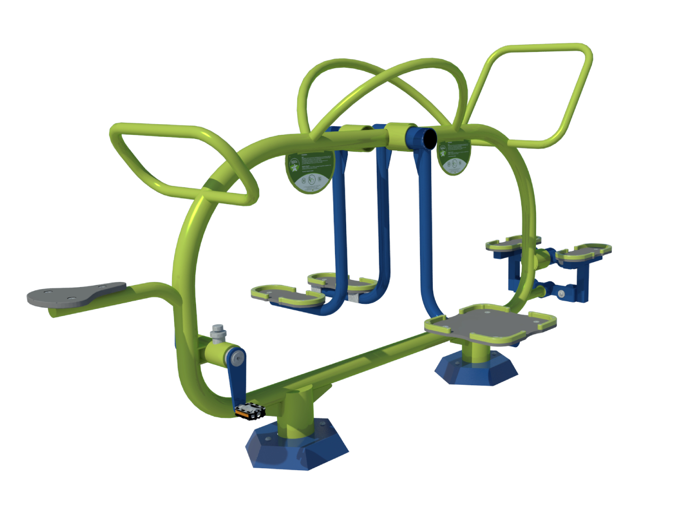 Dankzij de verschillende functies — zoals steppen, fietsen, skiën en de heupentrainer — kunnen vier kinderen tegelijkertijd genieten van een energieke workout in de buitenlucht. Zo wordt buitenspelen nog leuker én gezonder!