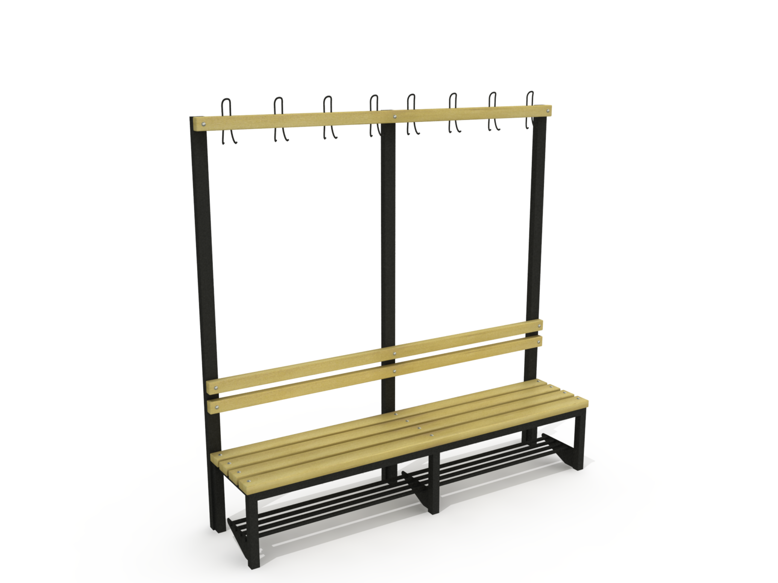 Onze dubbelzijdige kleedkamerbank met kledinghaken biedt een robuuste en praktische oplossing voor iedere kleedruimte. Ideaal voor sportclubs, scholen en bedrijven.