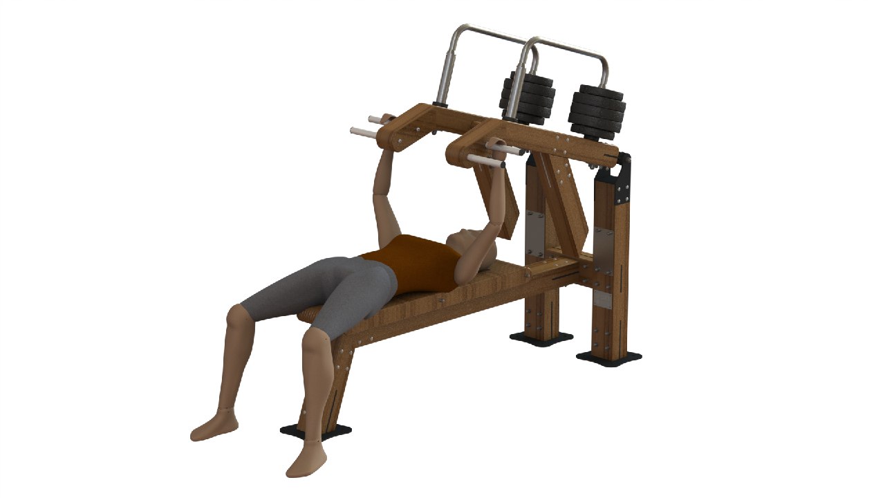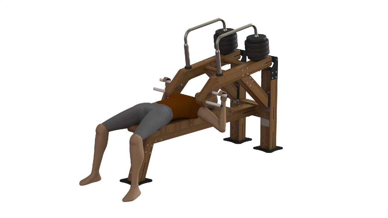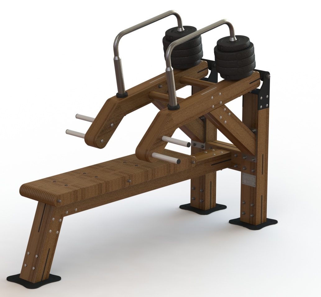 De ergonomische handgrepen zorgen voor comfort en veiligheid tijdens de training, met een minimale kans op blessures door de juiste lichaamshouding. De machine heeft een esthetisch houten ontwerp dat mooi aansluit op buitenomgevingen zoals sportterreinen en parken.