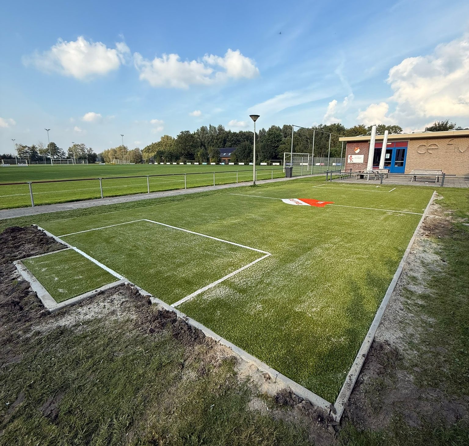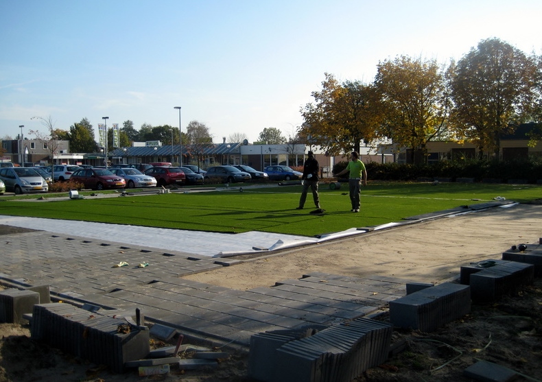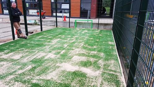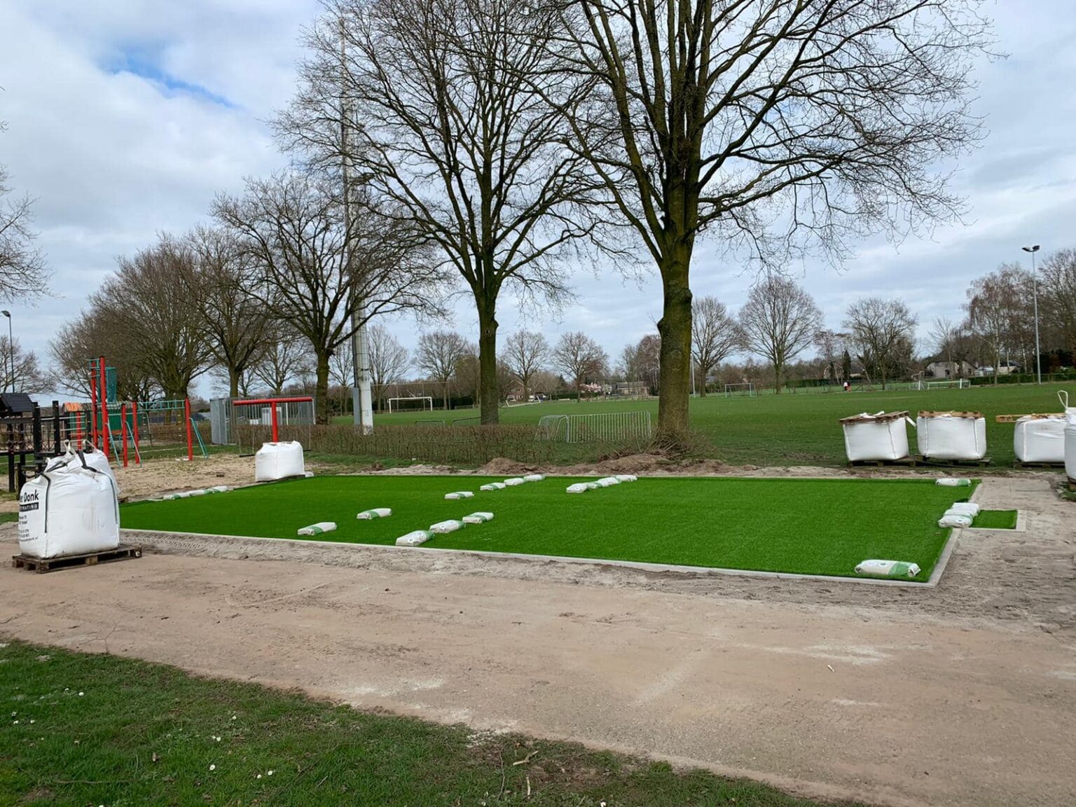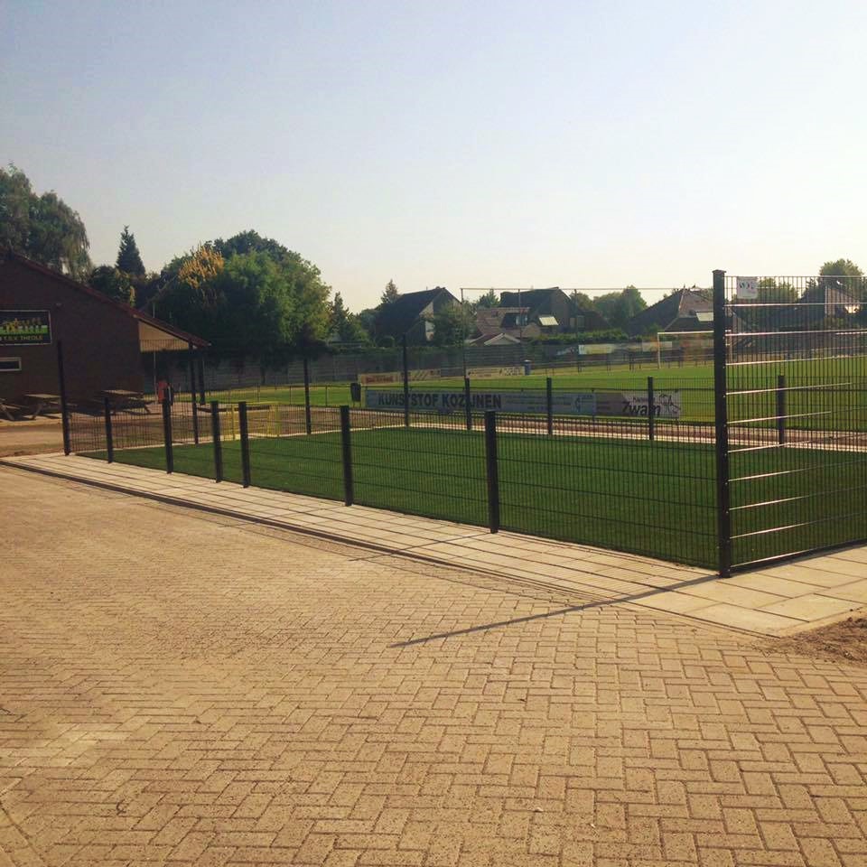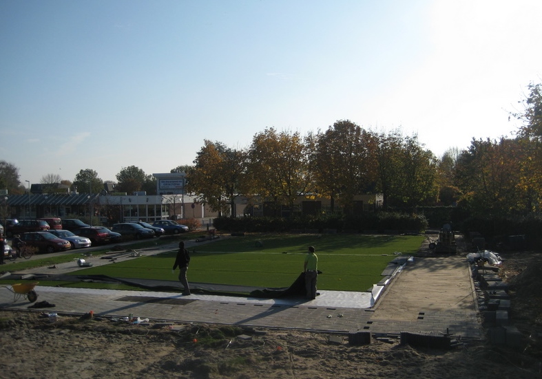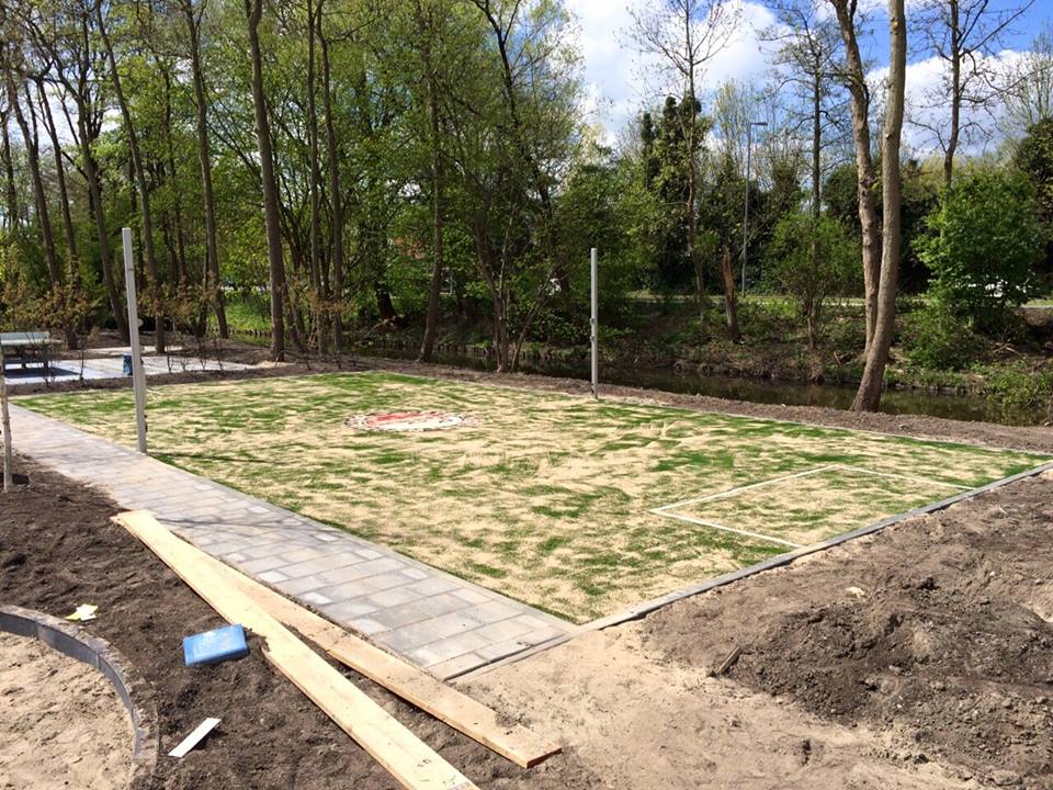 Ideaal voor pannavelden en sportkooien, de vereniging zorgt voor een zwarte ondergrond, zaait gras in en legt de mat erop.