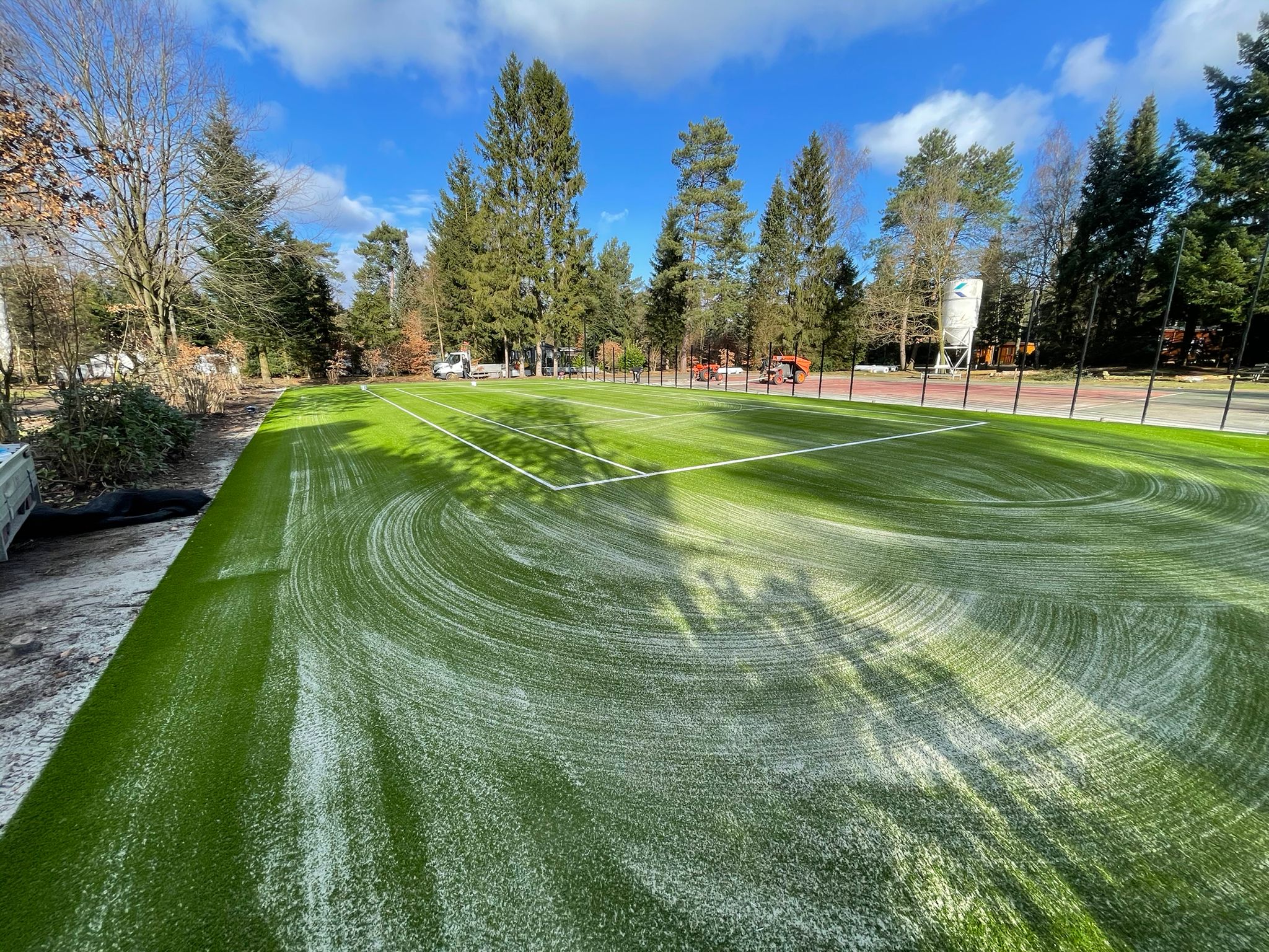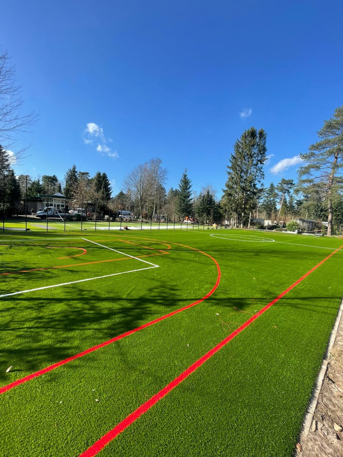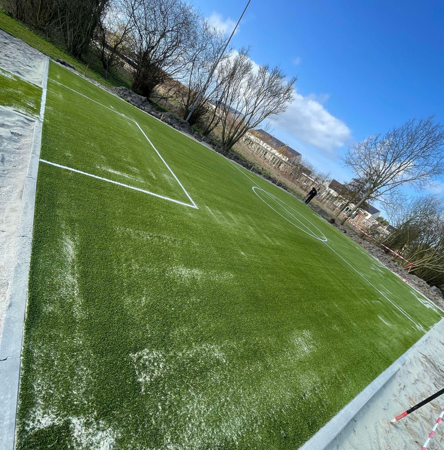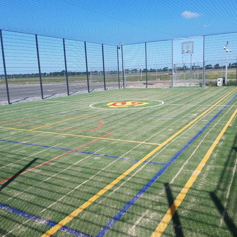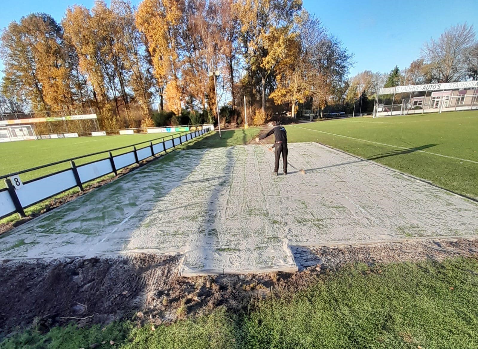 Ideaal voor pannavelden en sportkooien, de vereniging zorgt voor een zwarte ondergrond, zaait gras in en legt de mat erop.