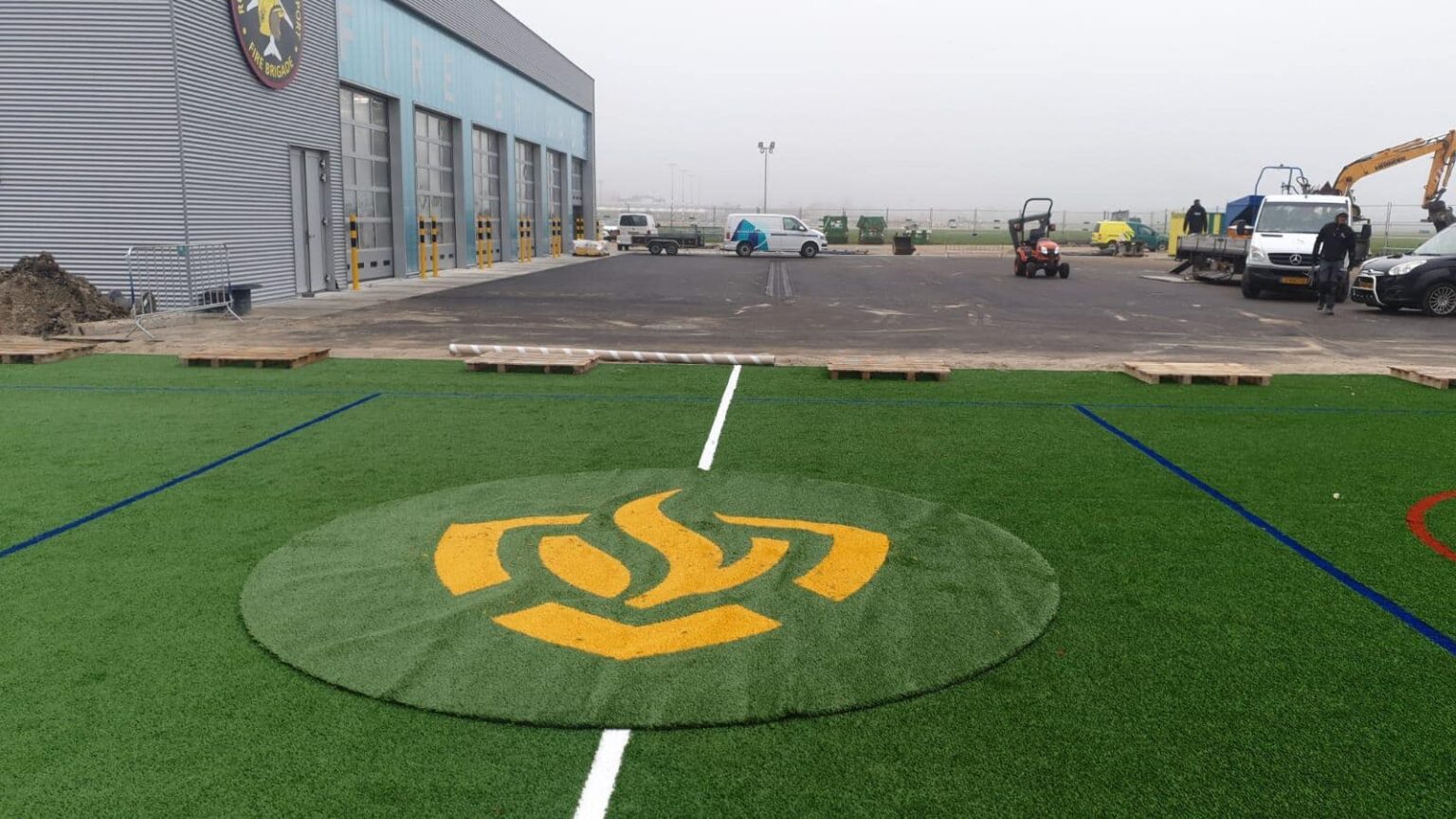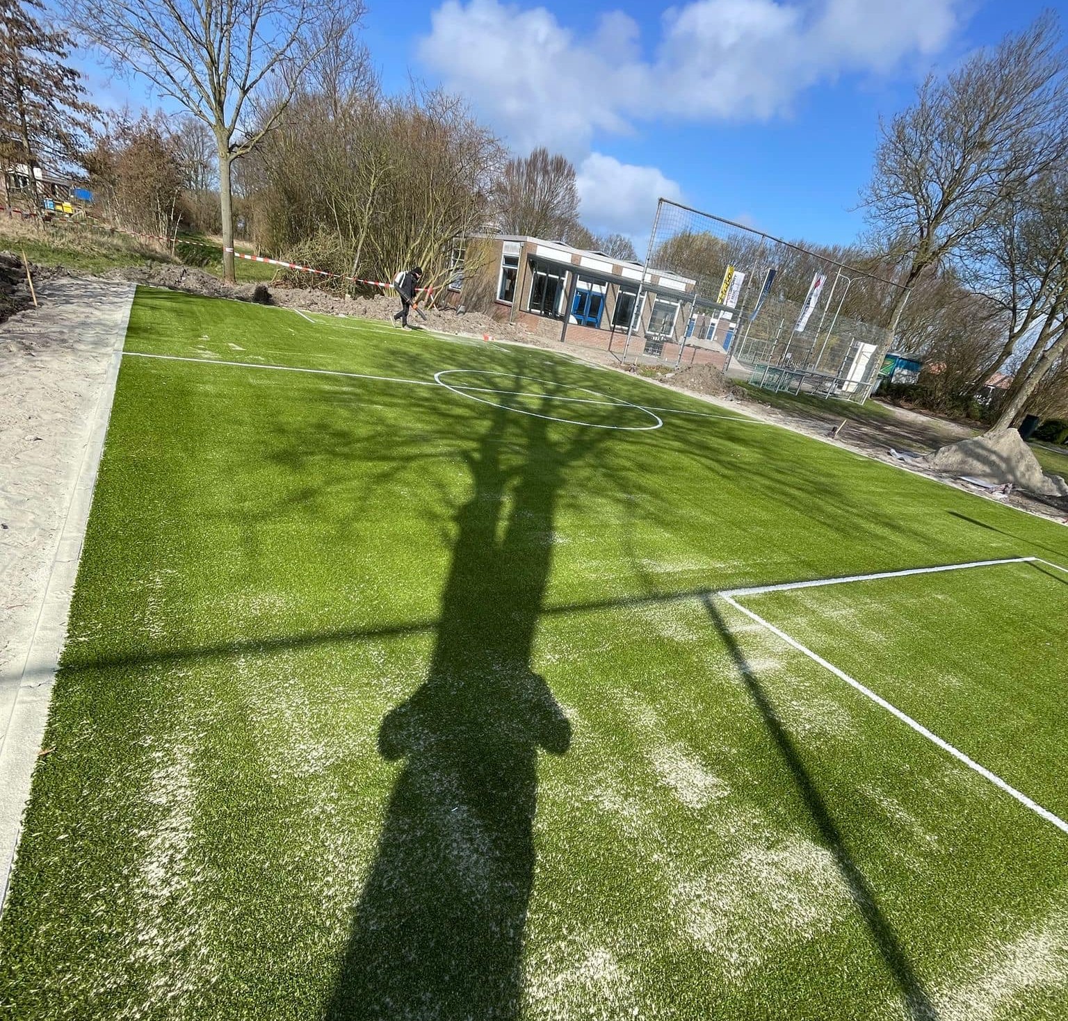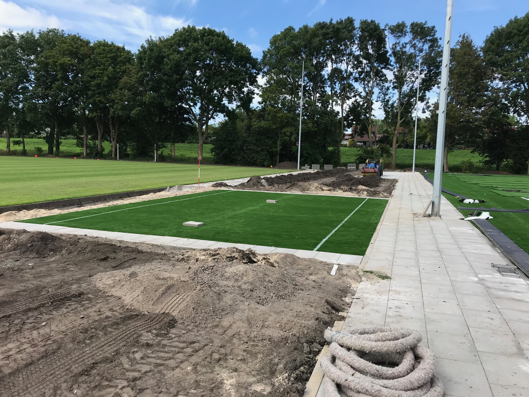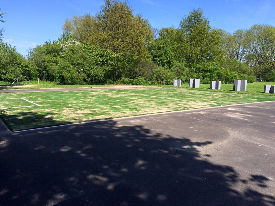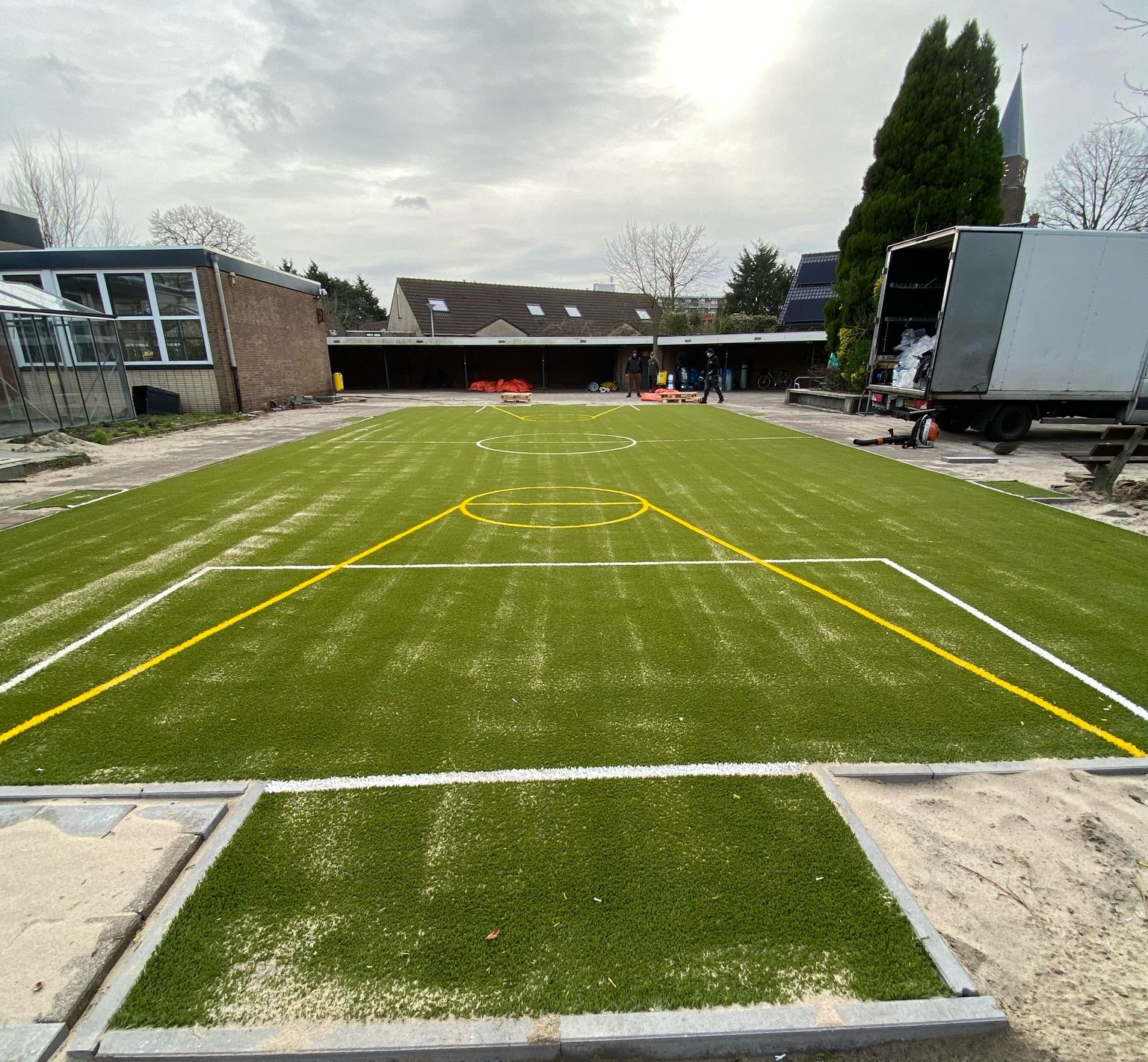 Ideaal voor pannavelden en sportkooien, de vereniging zorgt voor een zwarte ondergrond, zaait gras in en legt de mat erop.