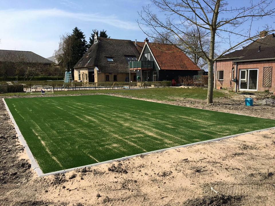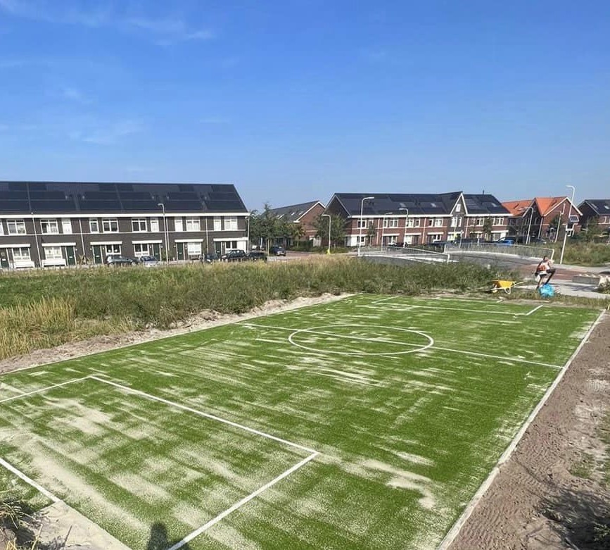 Afhankelijk van de afmetingen van het trapveld, het pannaveld of de sportkooi, leggen we dit op een zandbed met een foam-laag. Of op een zand-lava-bed. Voor pannavelden kiezen we eigenlijk altijd voor de sporttechnische foamlaag, voor grote sportkooien adviseren we een zand-lava-bed. Naast de standaard groene kleur, zijn deze kunstgrassoorten ook leverbaar in diverse andere leuke kleuren.