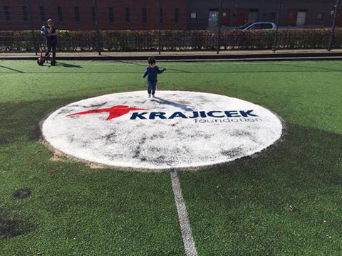 Ingelegd, dus zeer duurzaam. Zo hebben we bijvoorbeeld al diverse Krajicek-courts van nieuwe logo's voorzien.