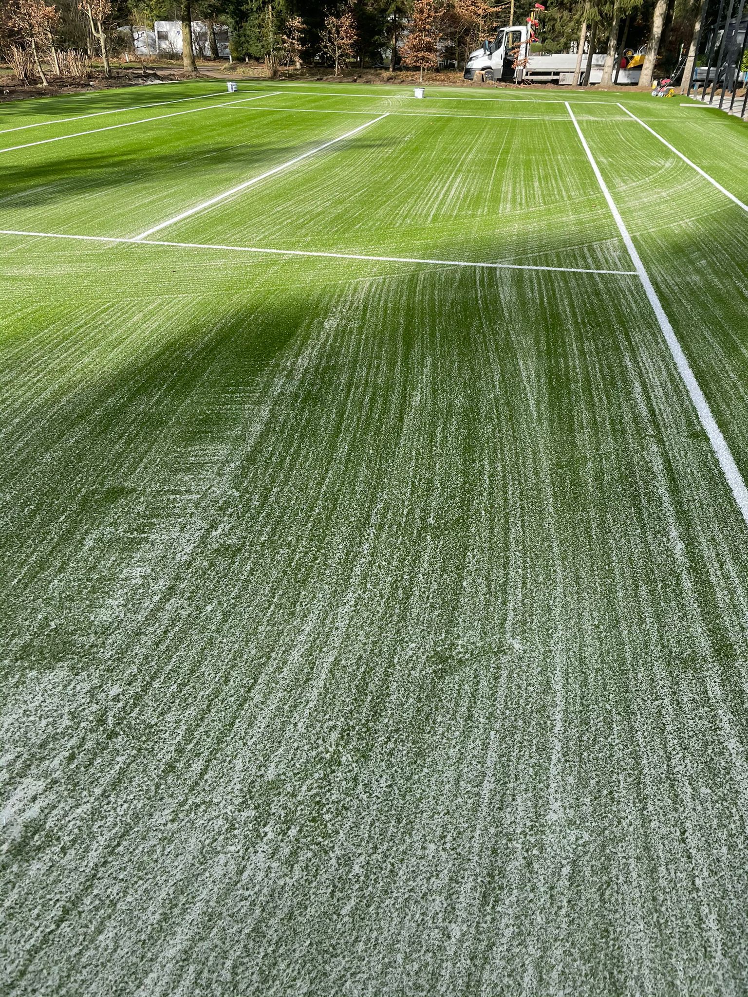Invulling: 15 kg/m² fijn gedroogd kwartszand en 7,5 kg/m² SBR rubbergranulaat