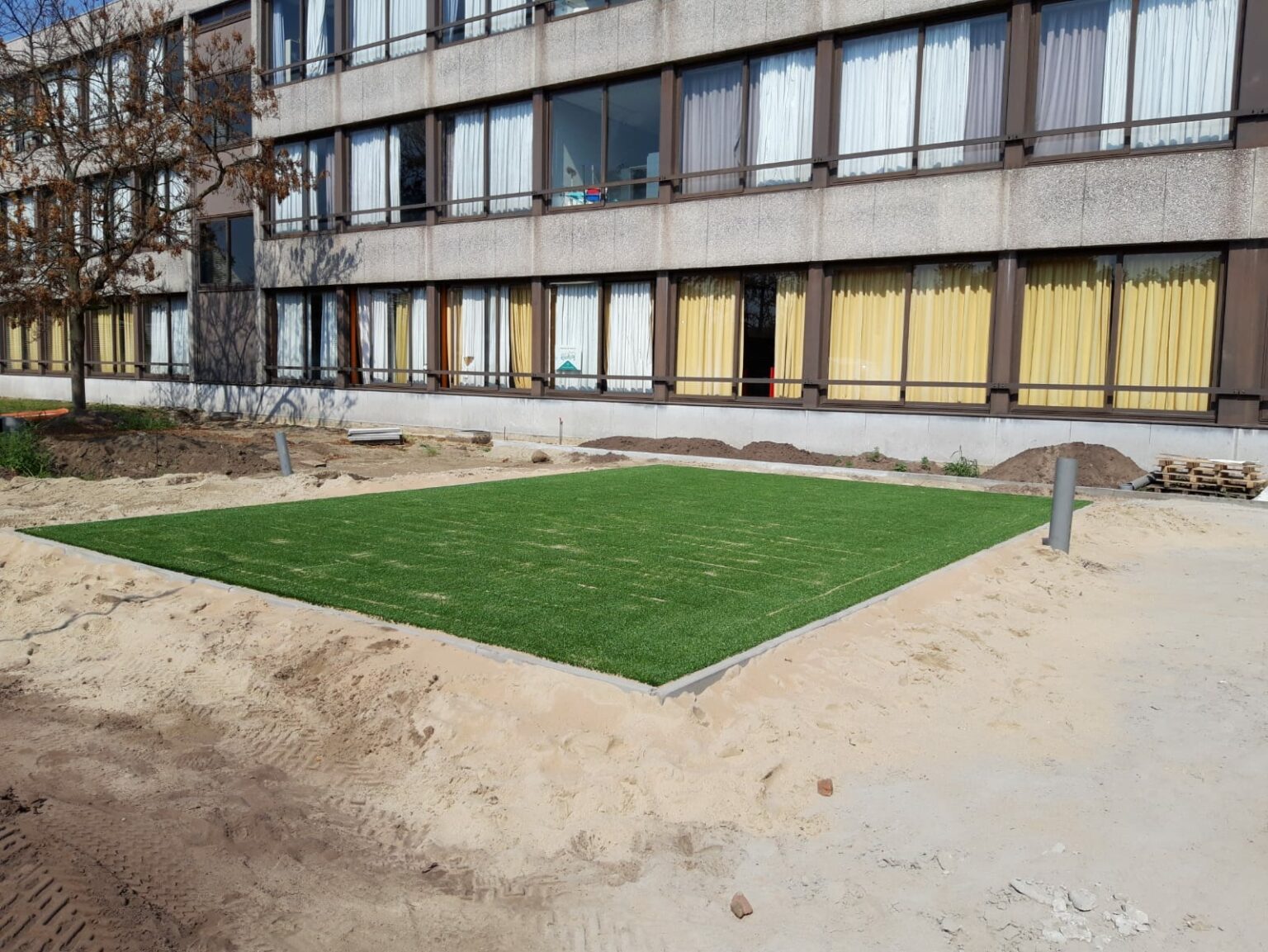Ook kunnen we kunstgras op een verharde ondergrond leggen, zoals beton of asfalt.