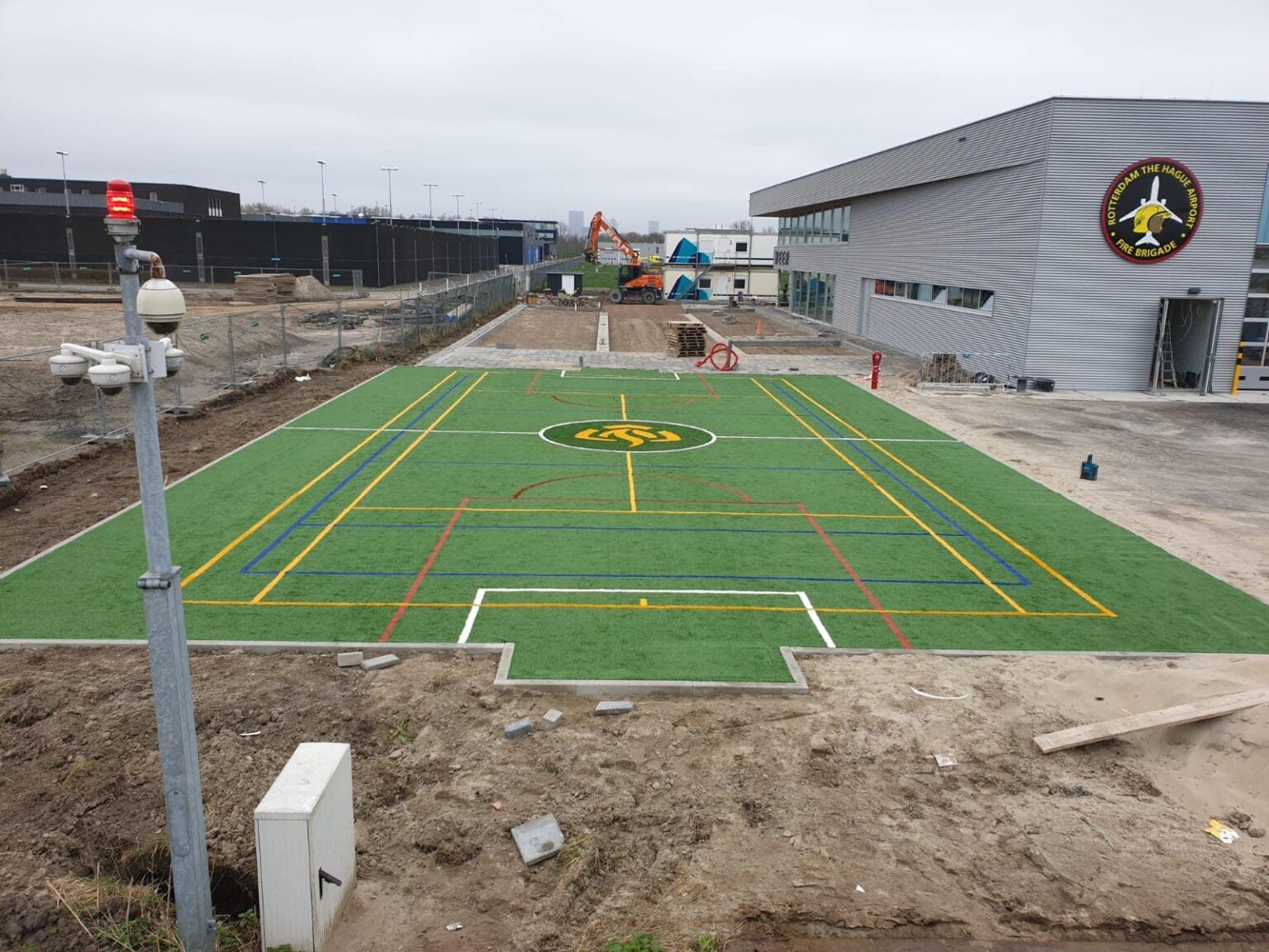 Duurzame coating met stroefheidsskorrel en/of belijning van uw pannaveld, pannakooi, voetbalkooi, sportkooi, speel-, school-, of sportplein.